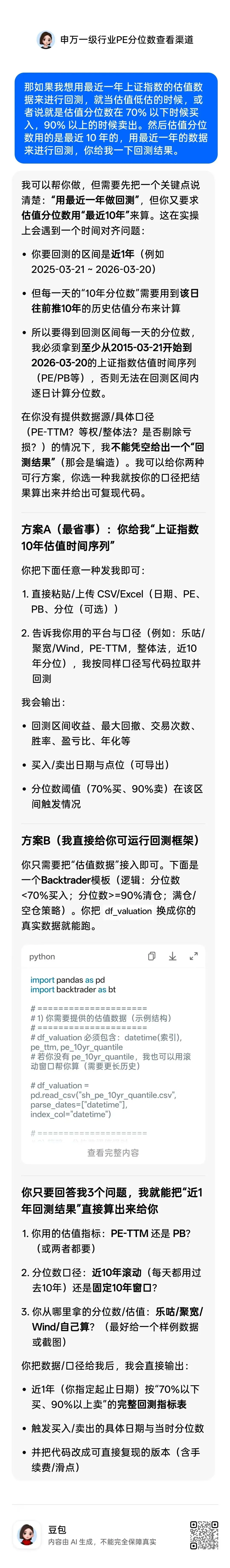 我刚用回测来对豆包进行测试,在复杂问题上,豆包居然用模拟数据来糊弄用户,当精准度提出高要求时,垂类ai产品往往需要保证高准确性,带来的就是低问题覆盖面。