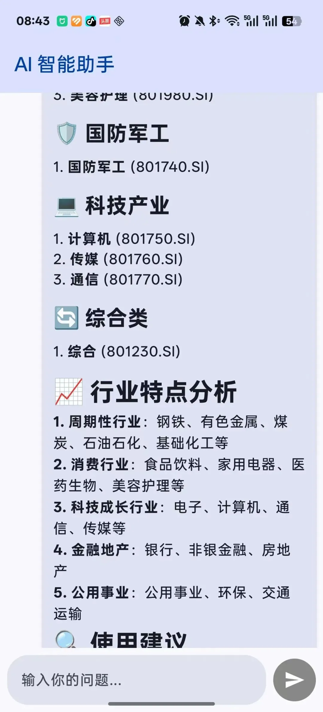 并且现在ai聊天app也很成熟,比如豆包你一样可以问它股票相关的问题。