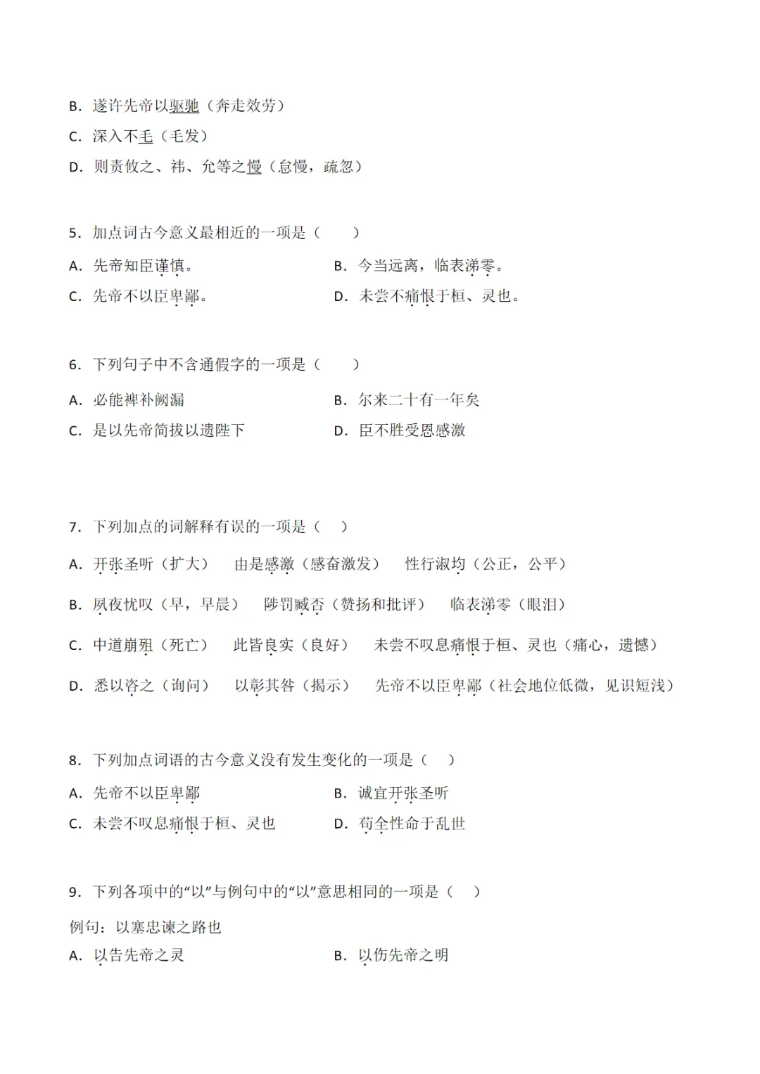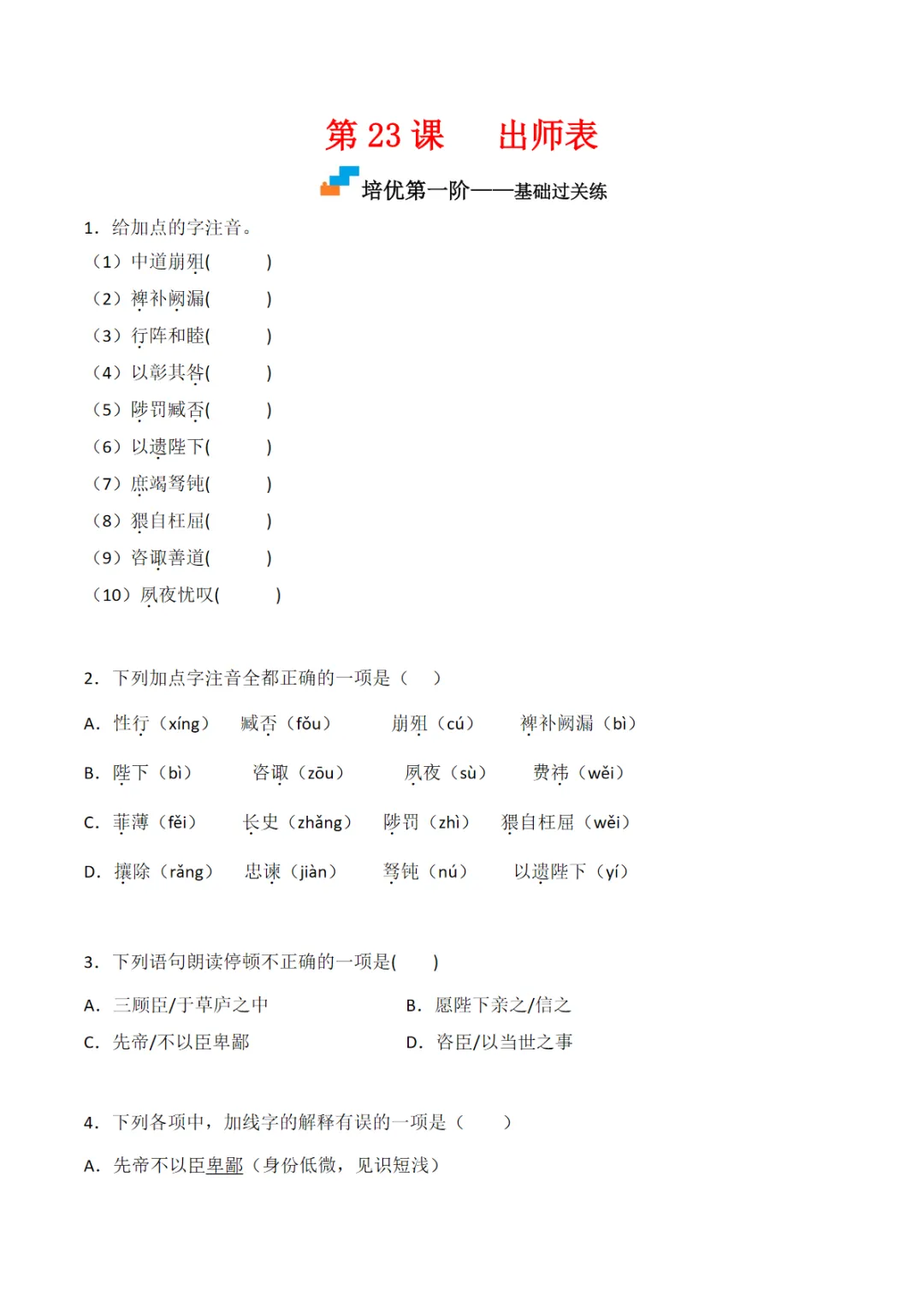 【资源免费下载】九年级(下)语文 第23课 《出师表》同步培优练习,PDF电子版,可打印