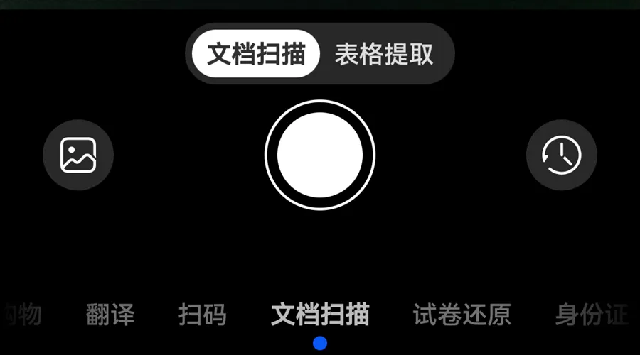 点击这个图标,屏幕下方会弹出一个功能菜单。用手指向左滑动菜单,找到「扫描」模式并点击它。