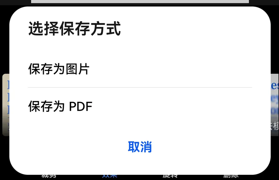 根据需要选择,此时图片会保存在相册中。生成PDF的话,选择你希望保存的文件夹(例如“Documents”),然后点击「保存」。