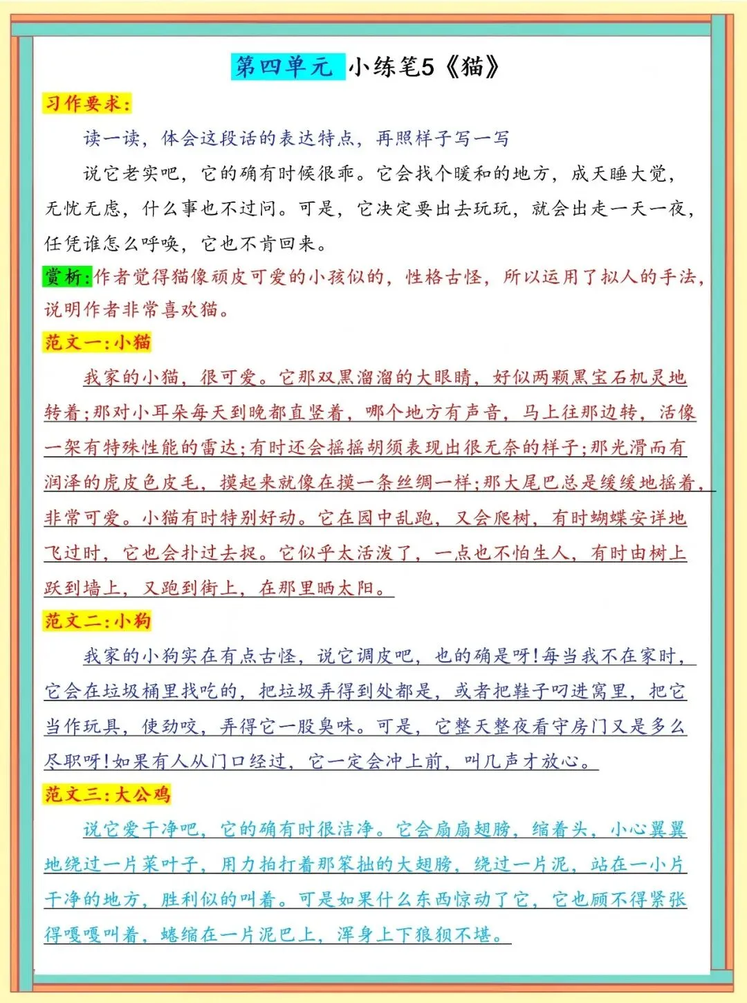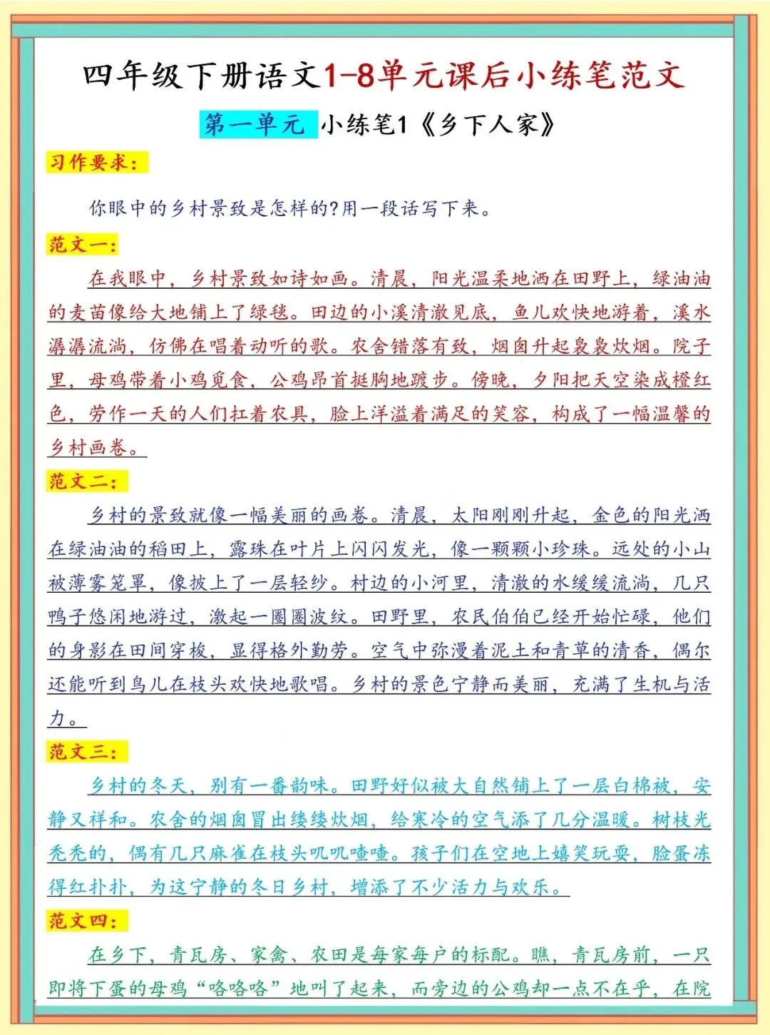 大家好,我是蒂尼江,今天分享的是部编版 四年级下册语文1-8单元课内常考重点句子仿写小练笔仿写拆解|引导|示范训练,关注我,每天持续分享更多的优质学习资料。