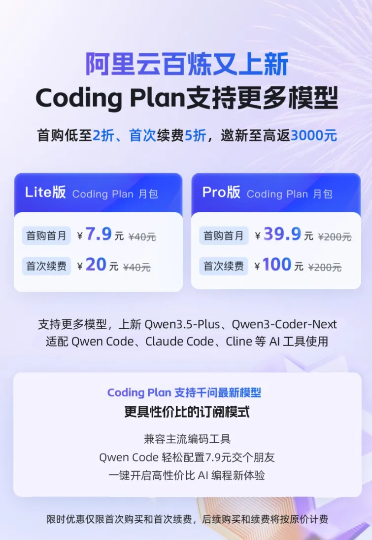 支持8款顶流模型(Qwen3.5、GLM-5、Kimi、MiniMax等) - 价格战之王