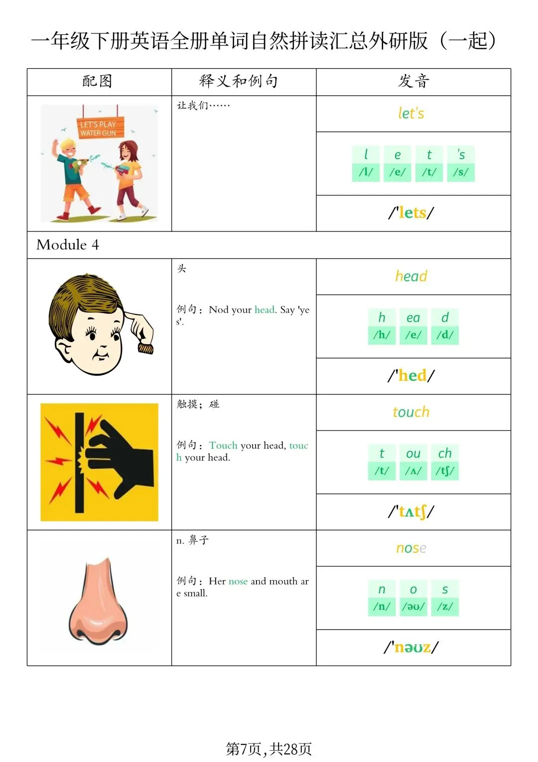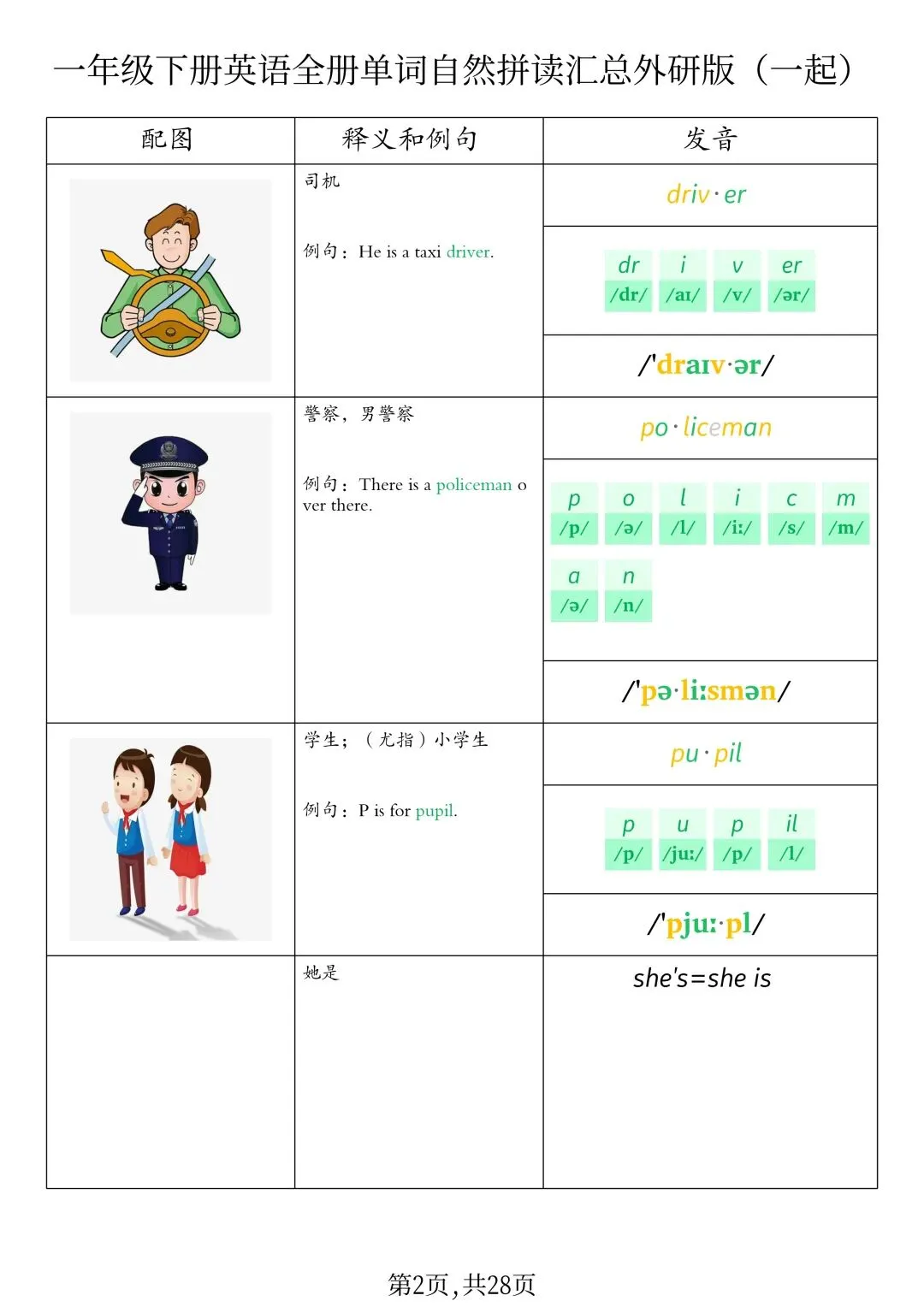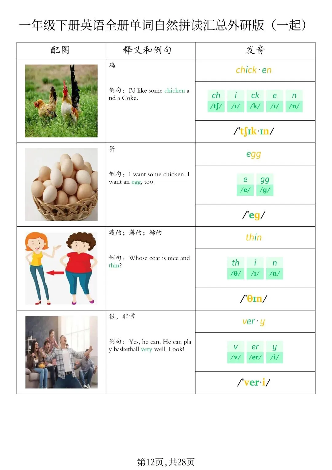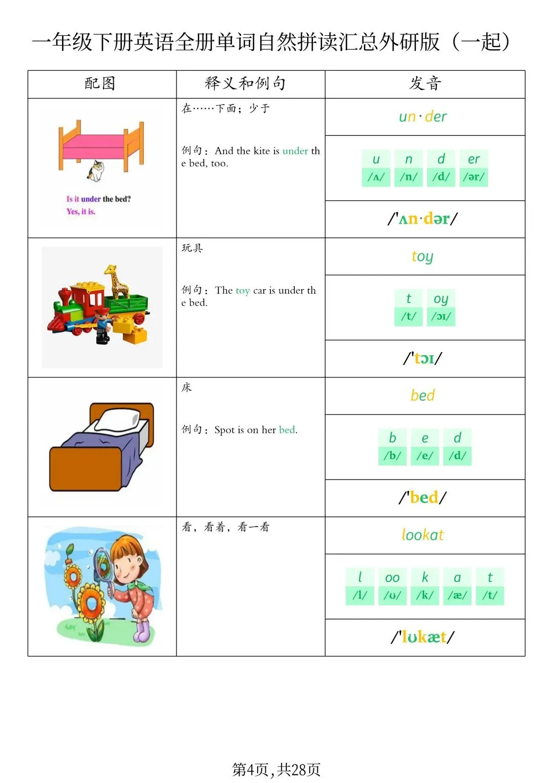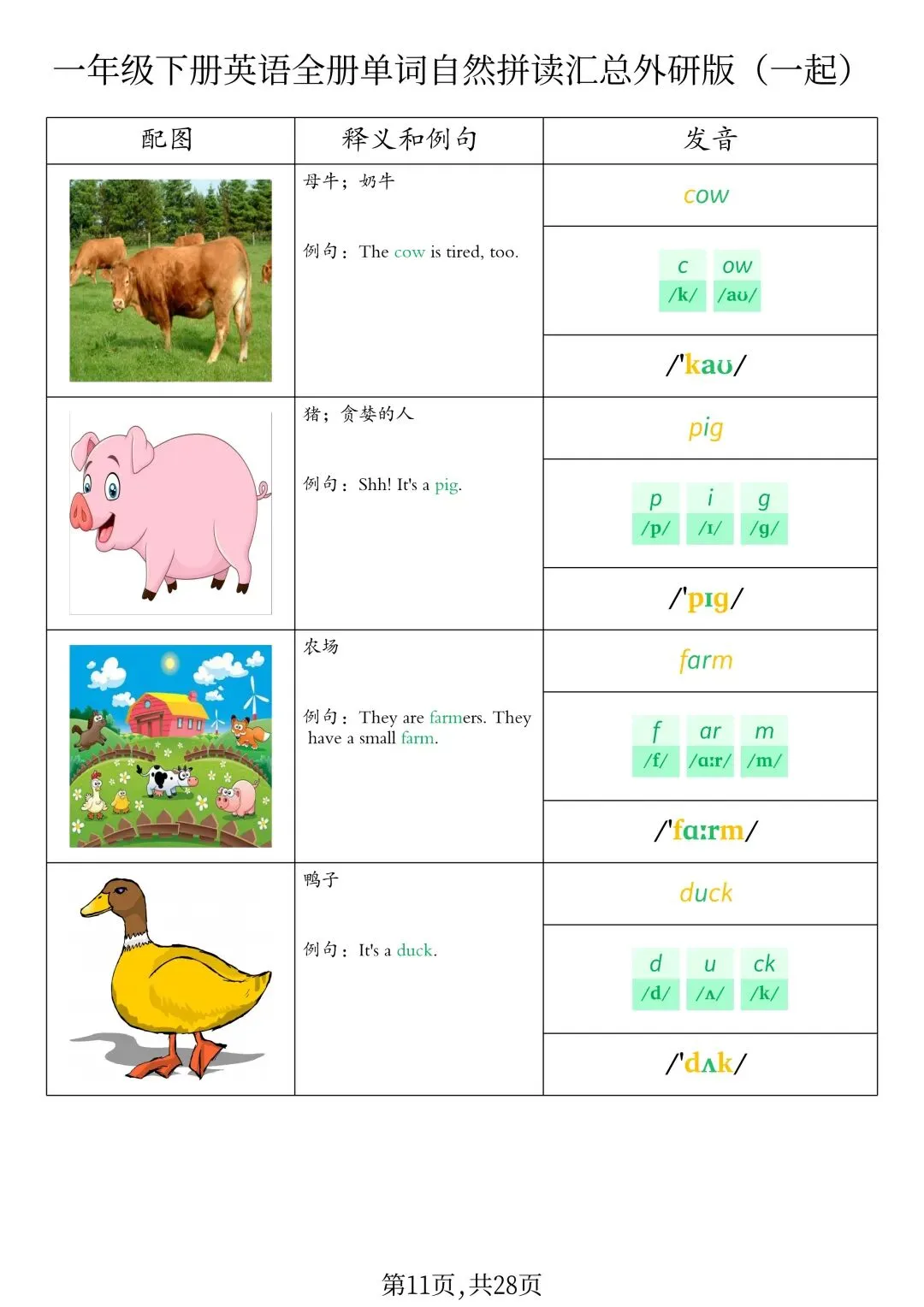 26年春新版一年级下册英语外研版(一起)全册单词自然拼读汇总,有完整可打印
