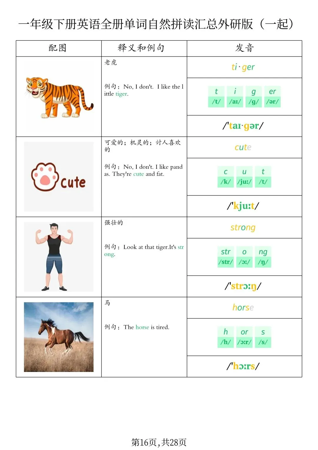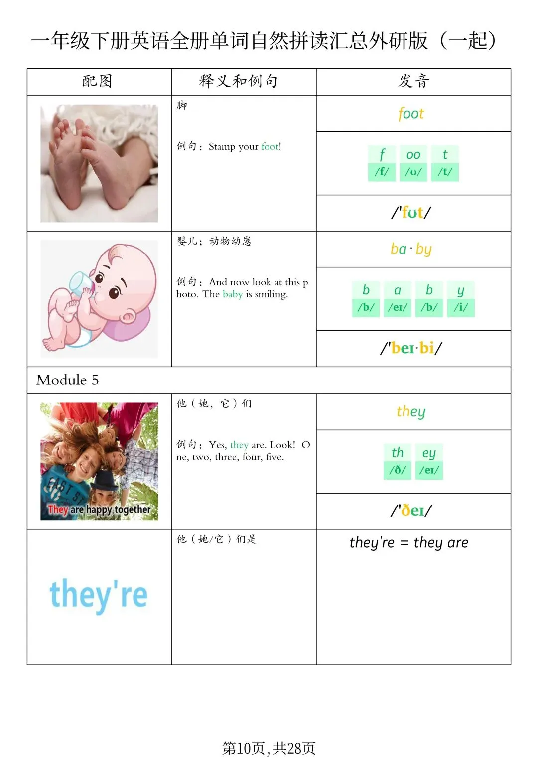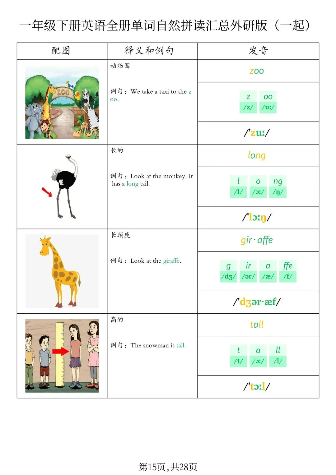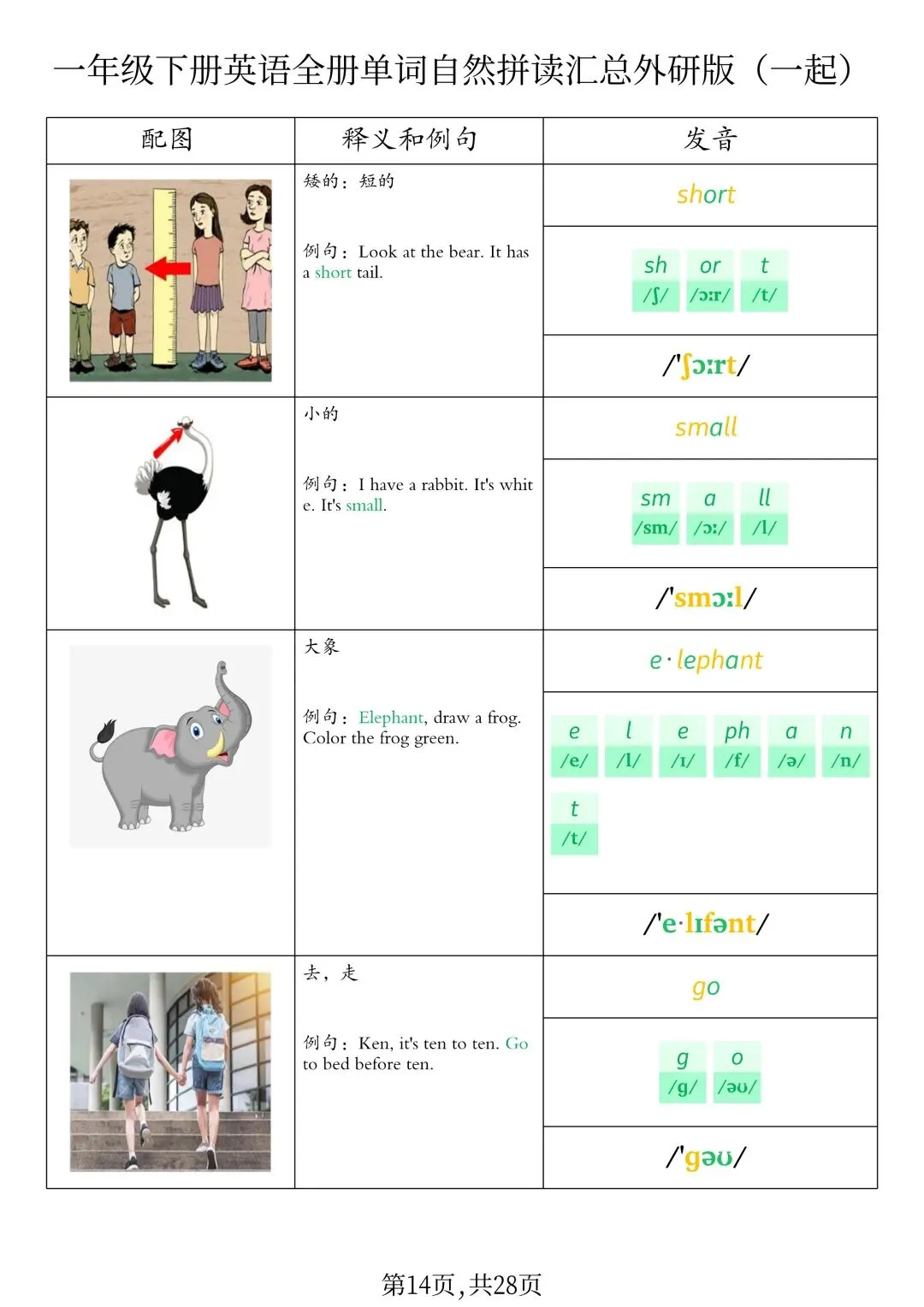 26年春新版一年级下册英语外研版(一起)全册单词自然拼读汇总,有完整可打印