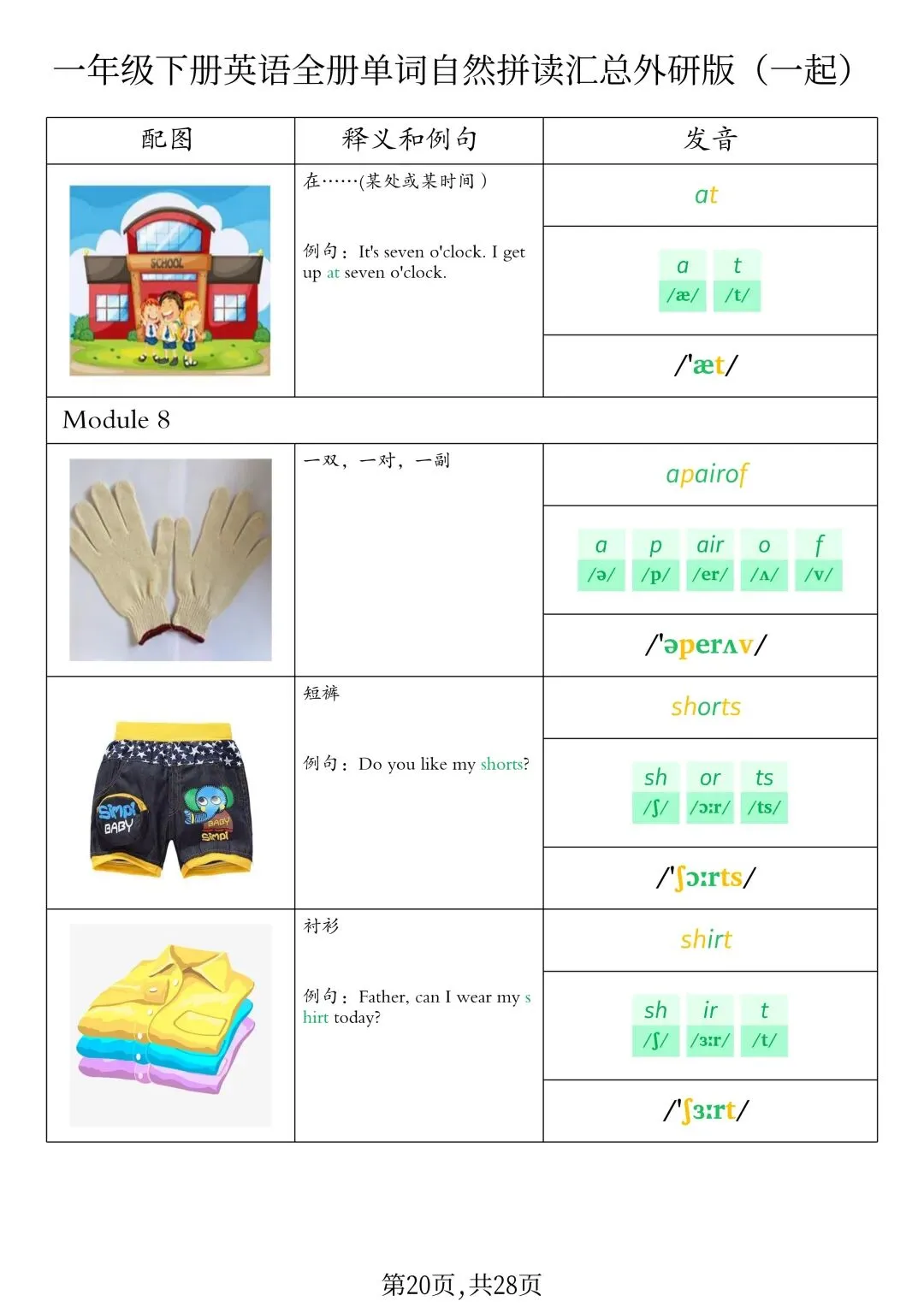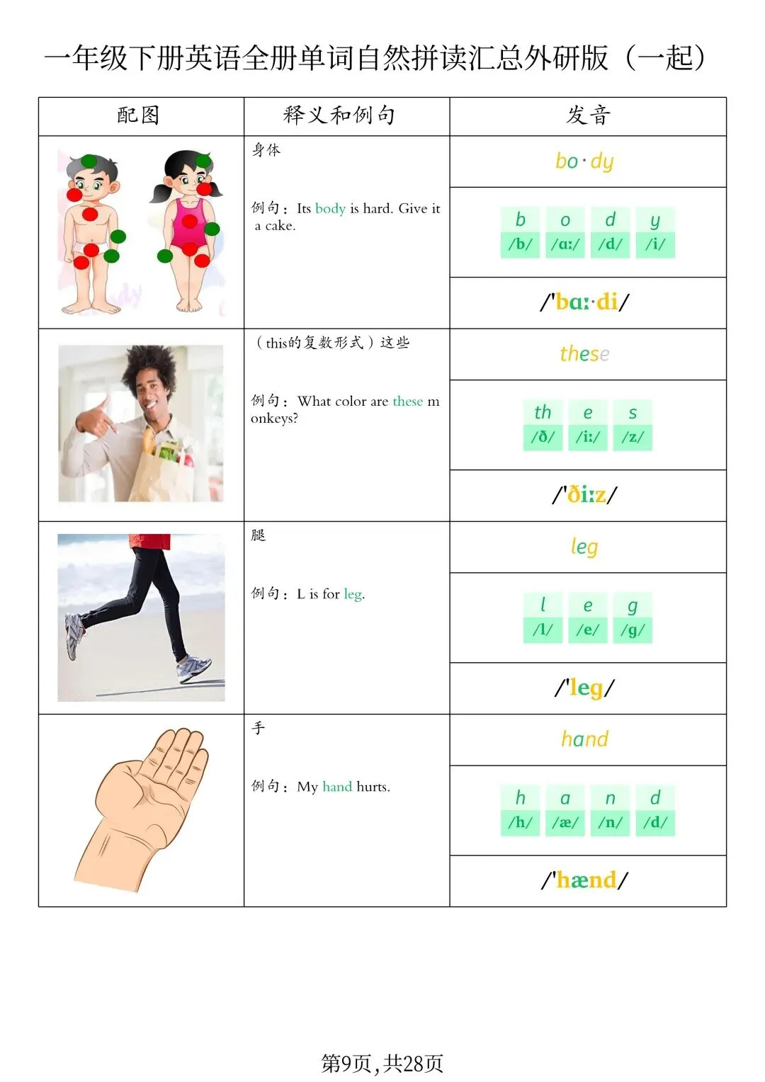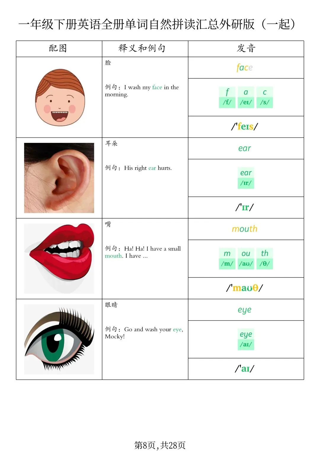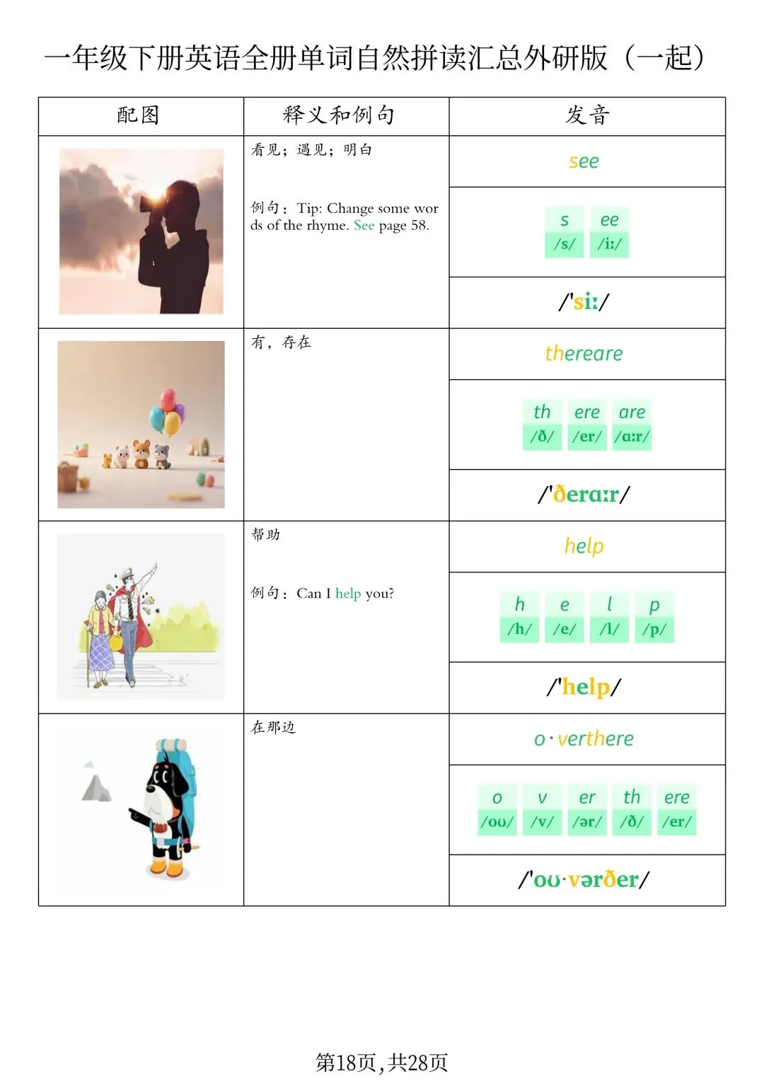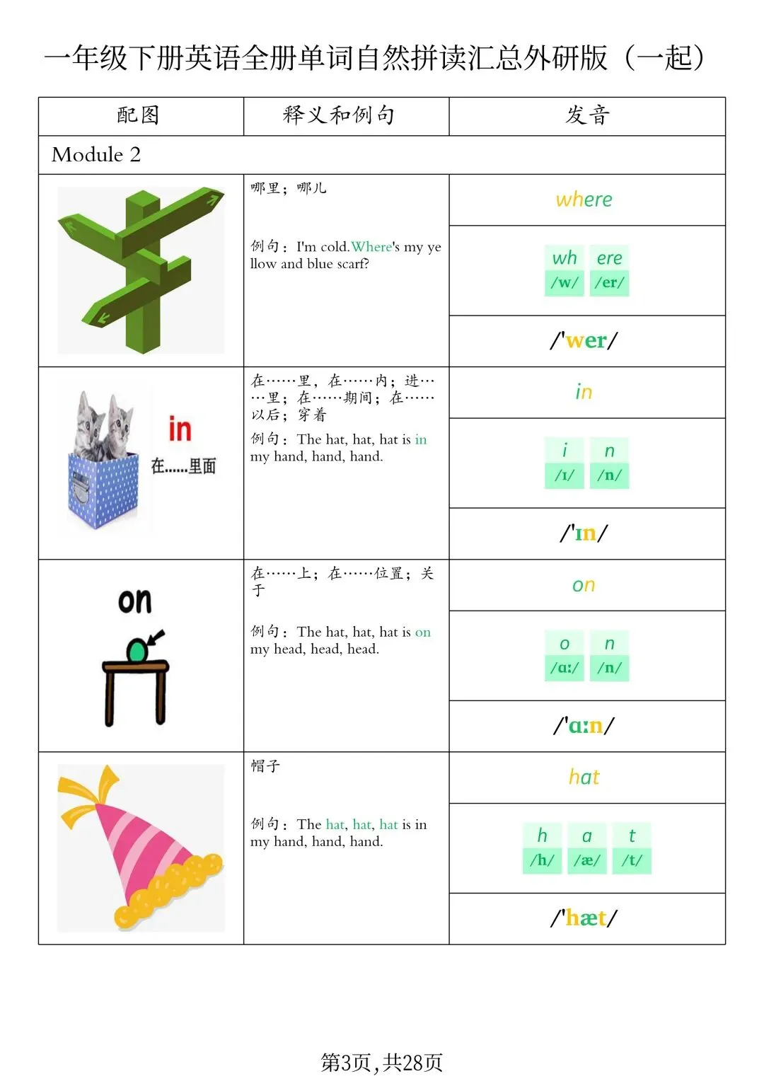 26年春新版一年级下册英语外研版(一起)全册单词自然拼读汇总,有完整可打印