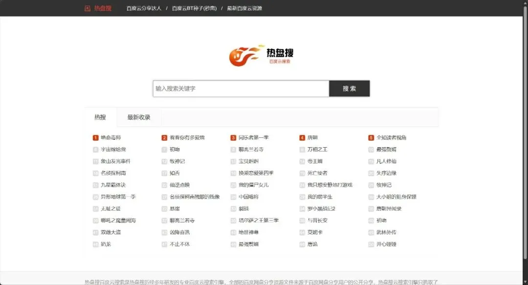 – 特点:专注百度网盘资源,热搜榜+最新收录双栏展示