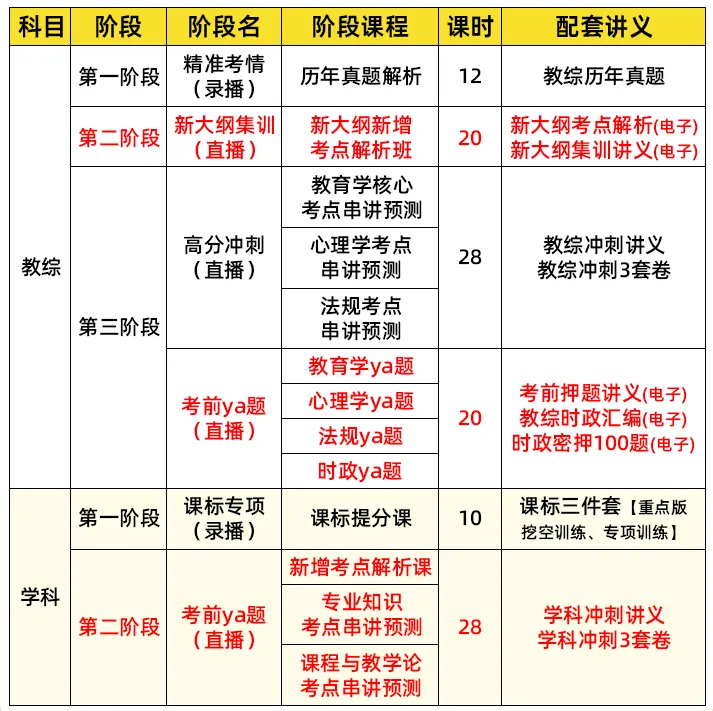 教综+学科,5大阶段,共计118课时直播+录播,课程设置符合需要考前冲刺拔高考生的备考需求,可无限回放至考前,助你随时随地畅学!