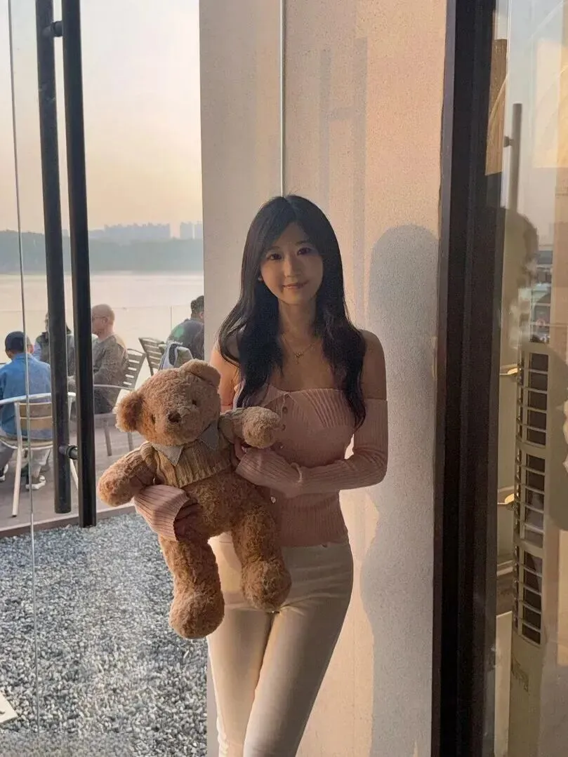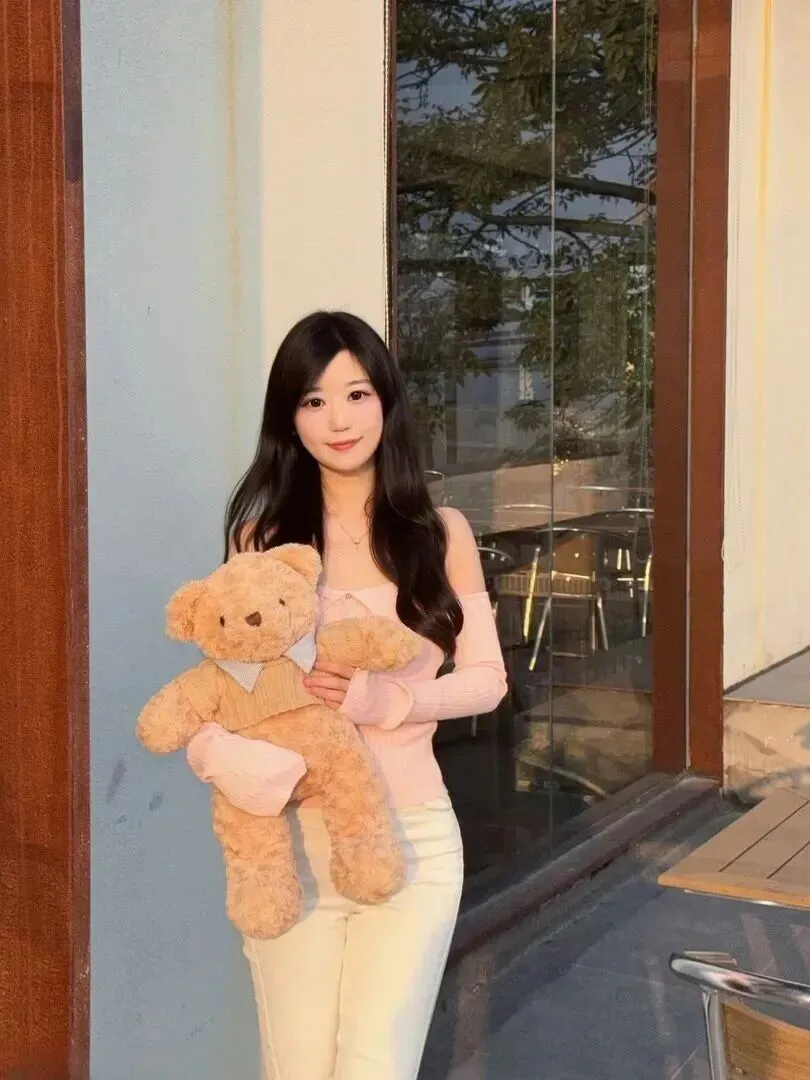 配饰方面,可以抱一只毛绒泰迪熊。毛茸茸的玩具一上手,瞬间可爱值爆表!棕色的小熊和粉白配色特别搭,整体造型看起来更和谐,少女感直接拉满。