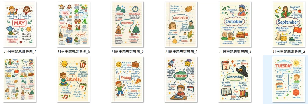 传统的机械背诵枯燥又低效,而今天要推荐的这套 “星期 & 月份思维导图资源”,用可视化、趣味化的方式,把抽象的英语词汇变成了孩子一看就懂、一学就爱的视觉盛宴!作为家里或学校英语学习角环创海报,也是一流!