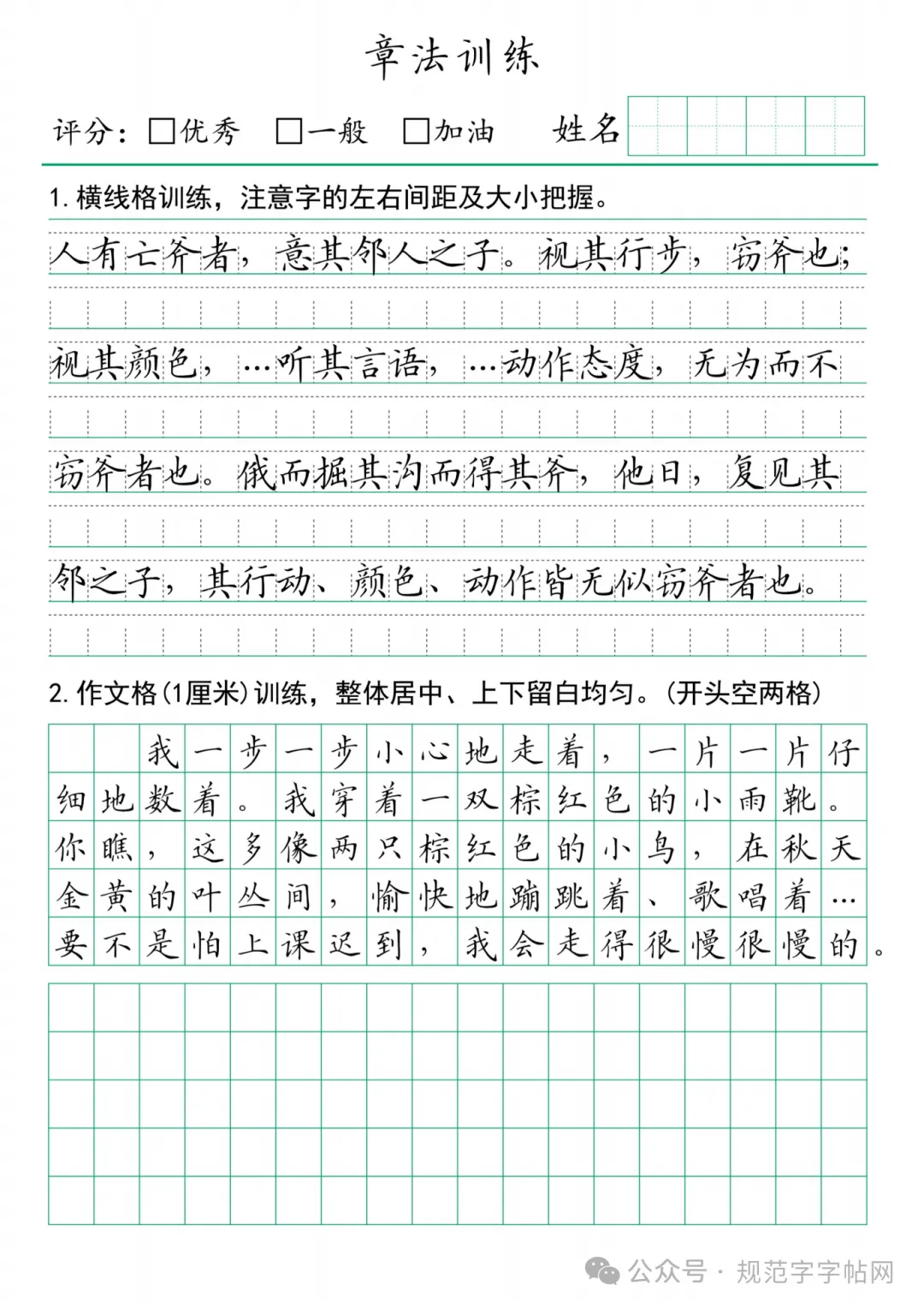 章法 =字的位置 + 字距行距 + 整体布局 + 落款印章,硬笔最看重干净、整齐、透气、统一。