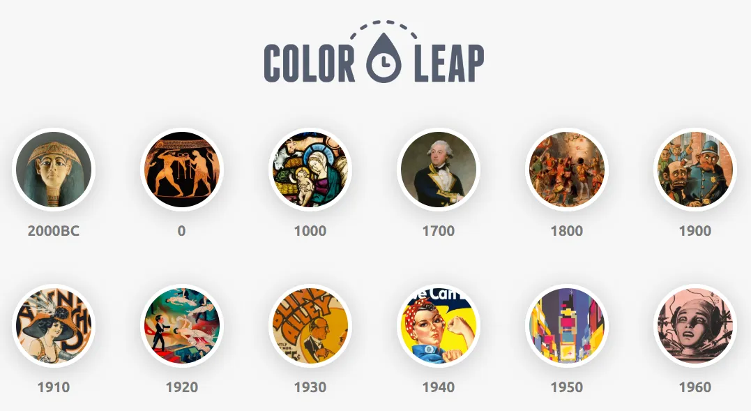 这是一个专注于展示历史色彩搭配的网站,它的核心功能是让用户可以通过时间轴去探索不同时代的标志性调色板。