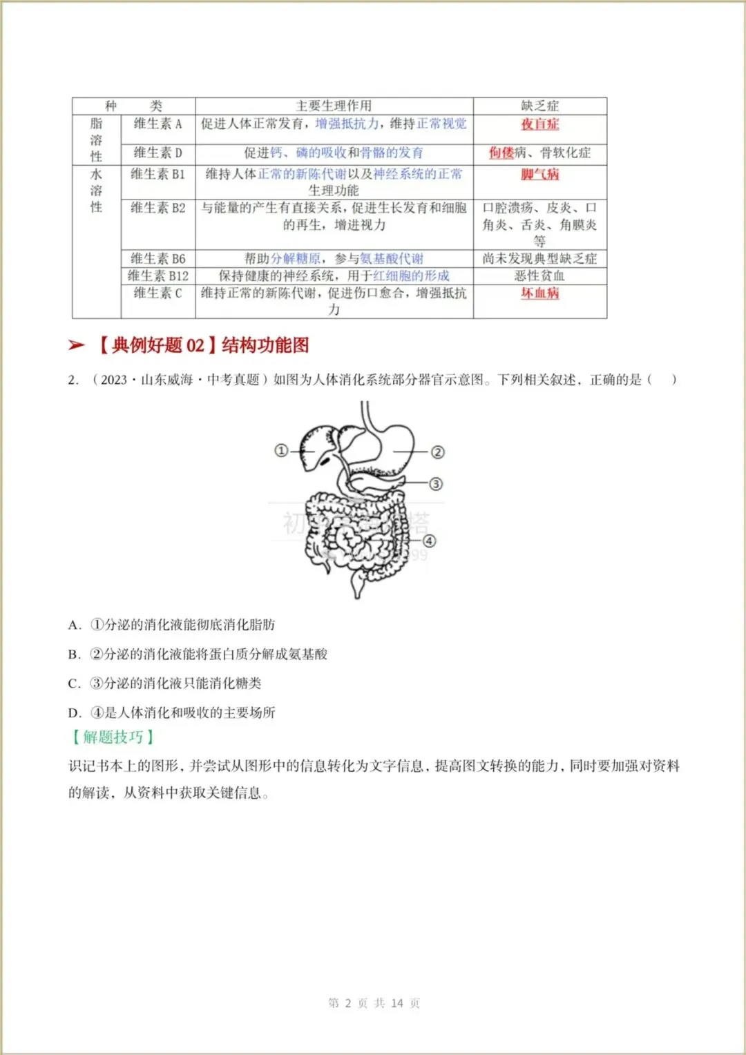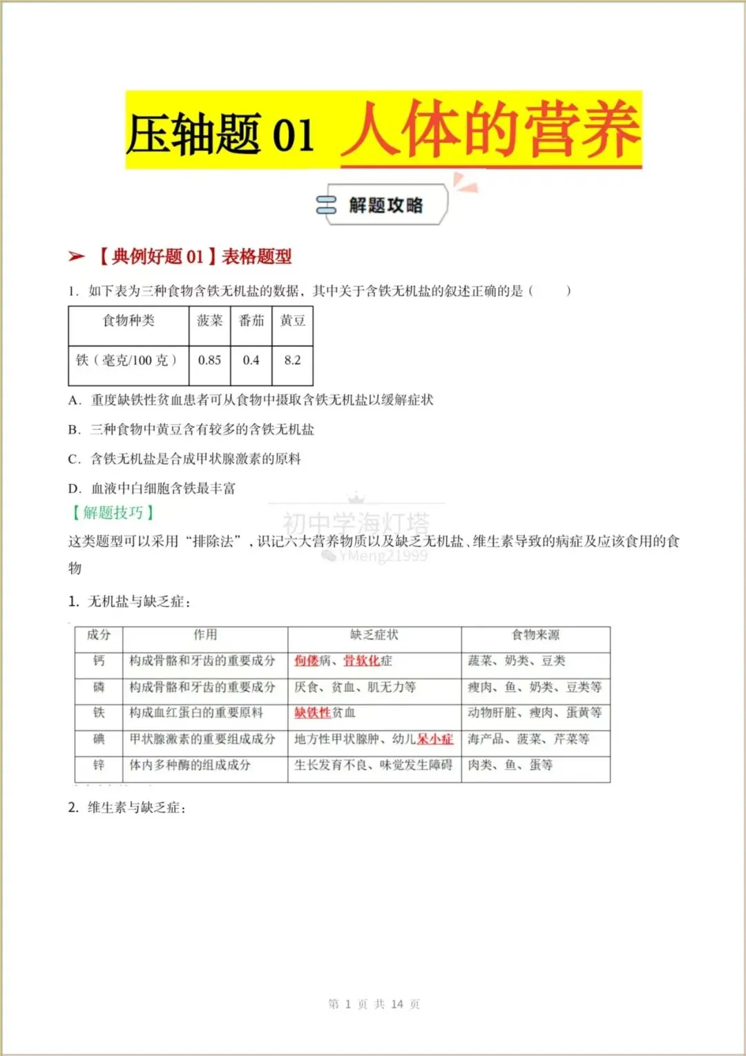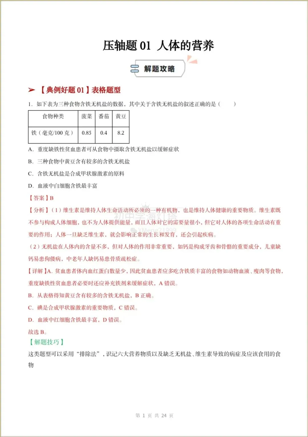 2026春新版【北师版】七年级下册〈生物〉压轴题专项《人体的营养》典例+解题攻略+解题技巧,可下载打印!