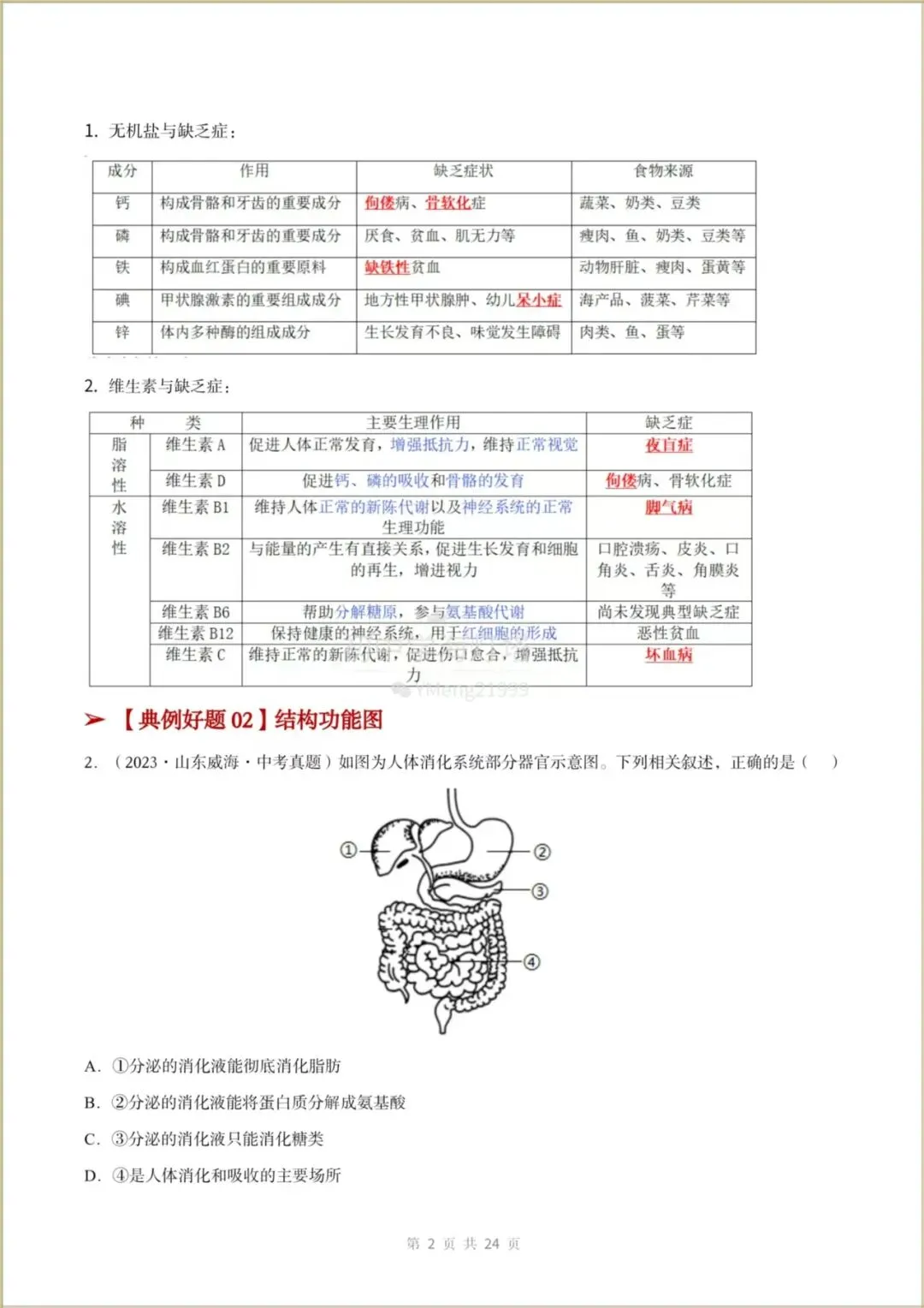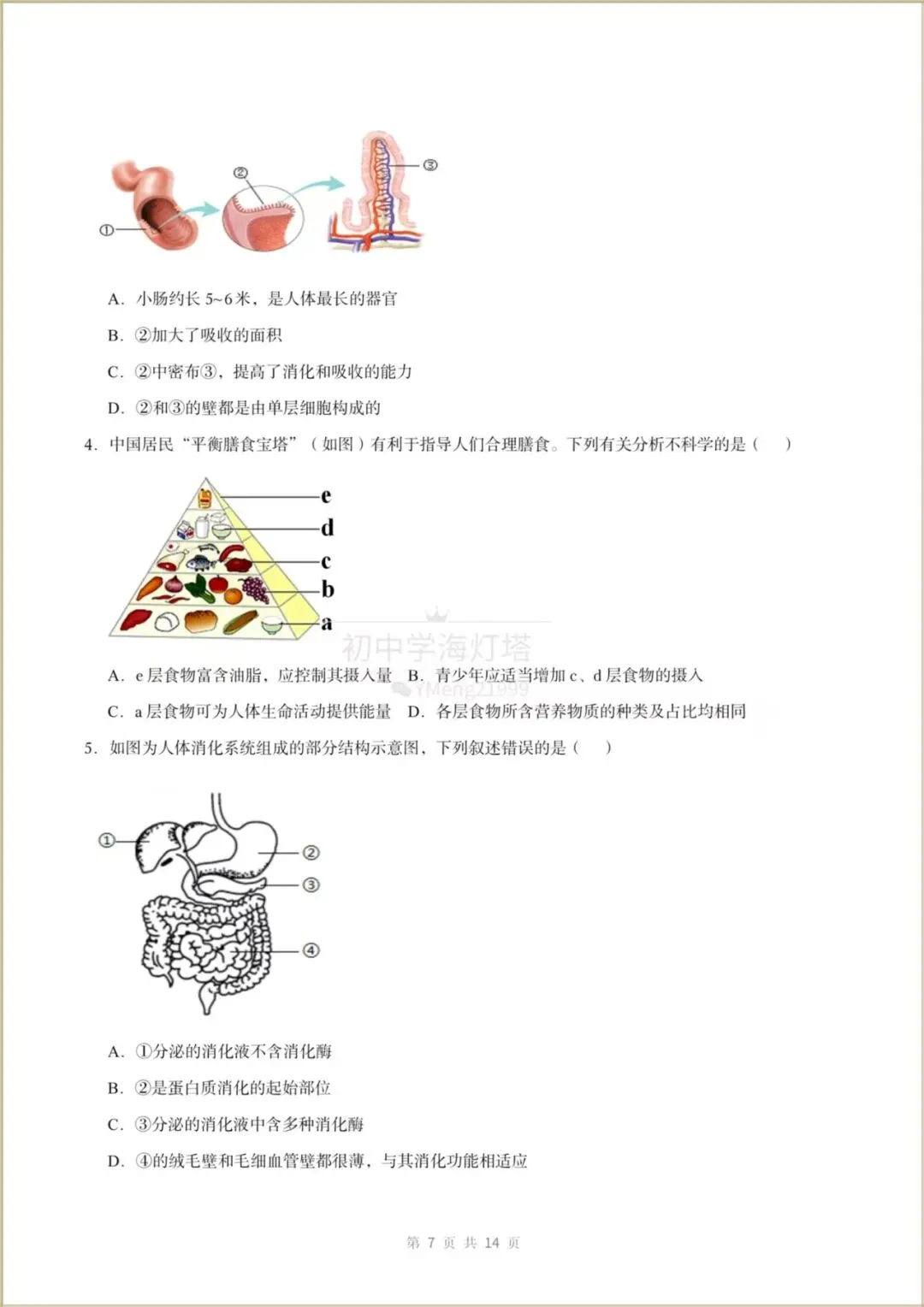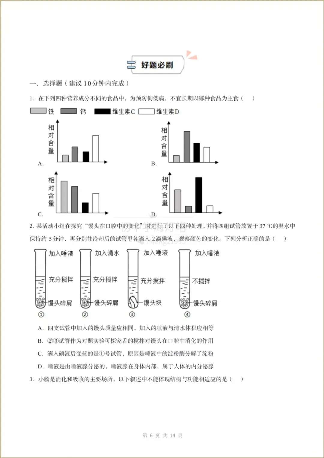 2026春新版【北师版】七年级下册〈生物〉压轴题专项《人体的营养》典例+解题攻略+解题技巧,可下载打印!