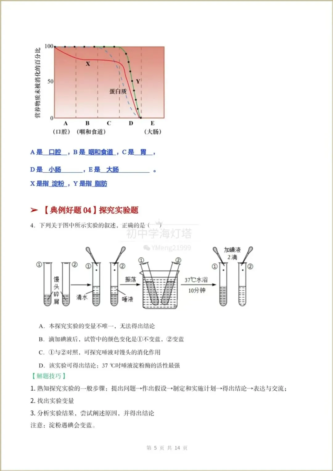 2026春新版【北师版】七年级下册〈生物〉压轴题专项《人体的营养》典例(表格题型+结构功能图+曲线图和消化过程模式图+探究实验题)解题攻略和解题技巧。
