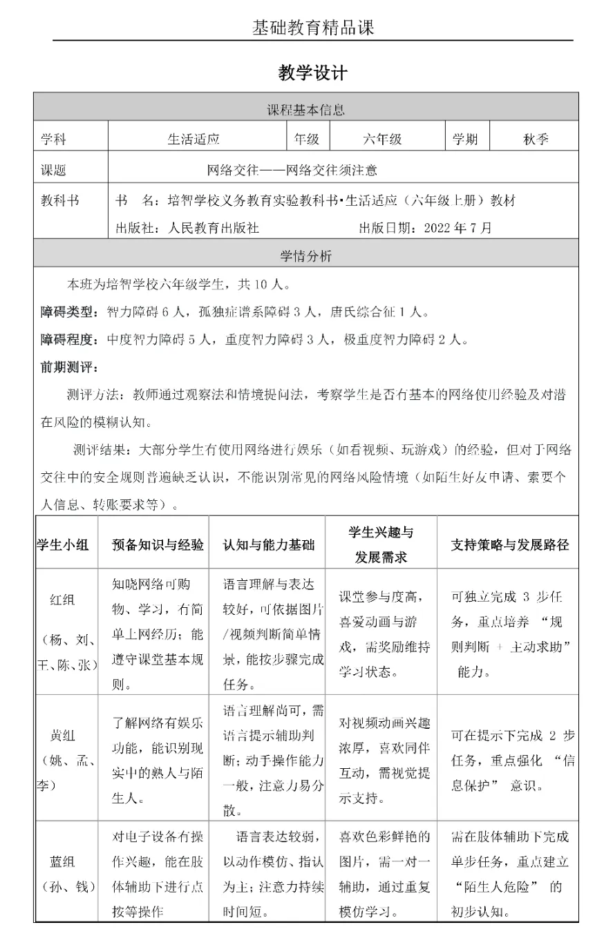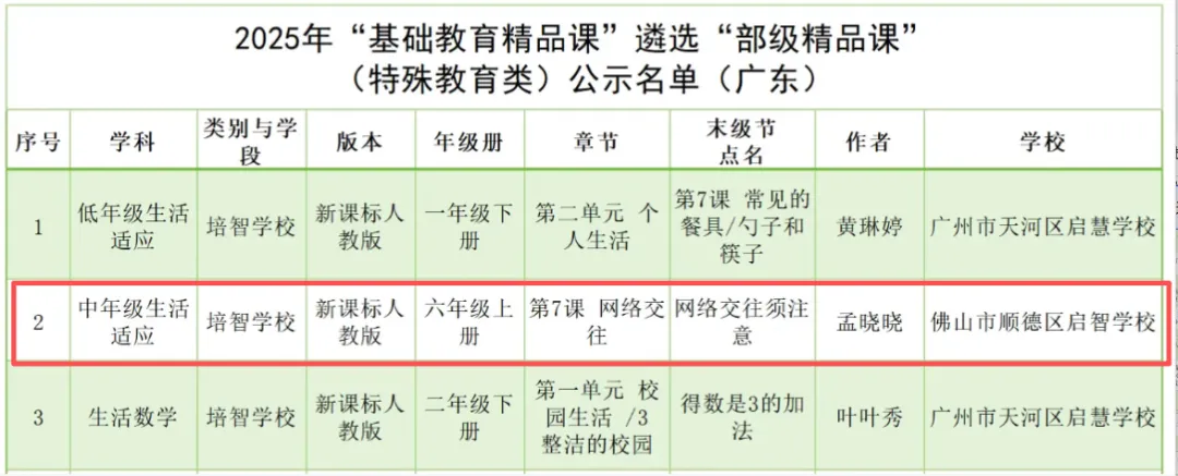 特殊教育一级教师,佛山市顺德区启智学校教师专业发展中心副主任,担任孤独部感知与运动领域教学工作。参与校本课程开发与教材编写,参与省市区多个课题,是广东省特殊教育内涵建设示范项目负责人。在《培智学校义务教育实验教科书生活适应(试教本)》全国试教试用活动中,所做的《良好的用餐习惯》荣获试教试用示范课。参与人民教育出版社培智新教材《生活适应》《信息技术》的审读工作。曾多次参加外派交流,赴省内外多所特殊学校开展公开课教研、专题讲座活动。曾先后获评“顺德区教育系统优秀党员”“顺德区教书育人优秀教师”“顺德区优秀共青团干部”“顺德区优秀评估工作者”。