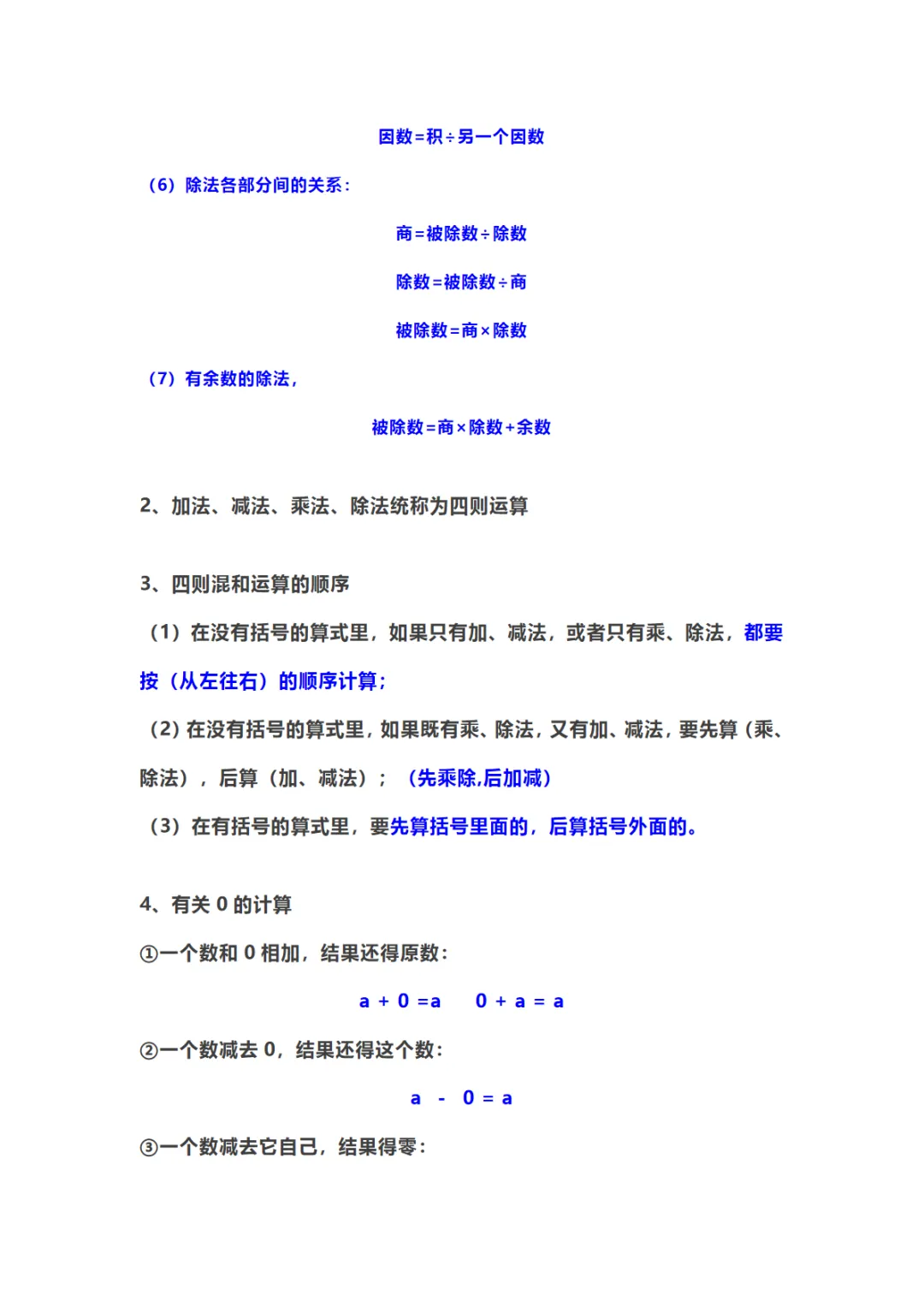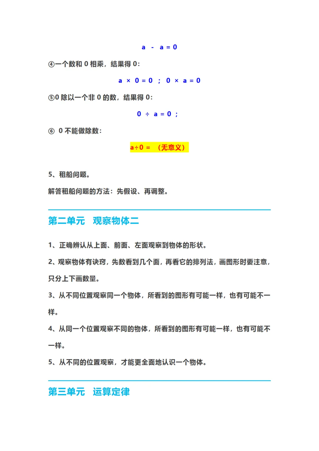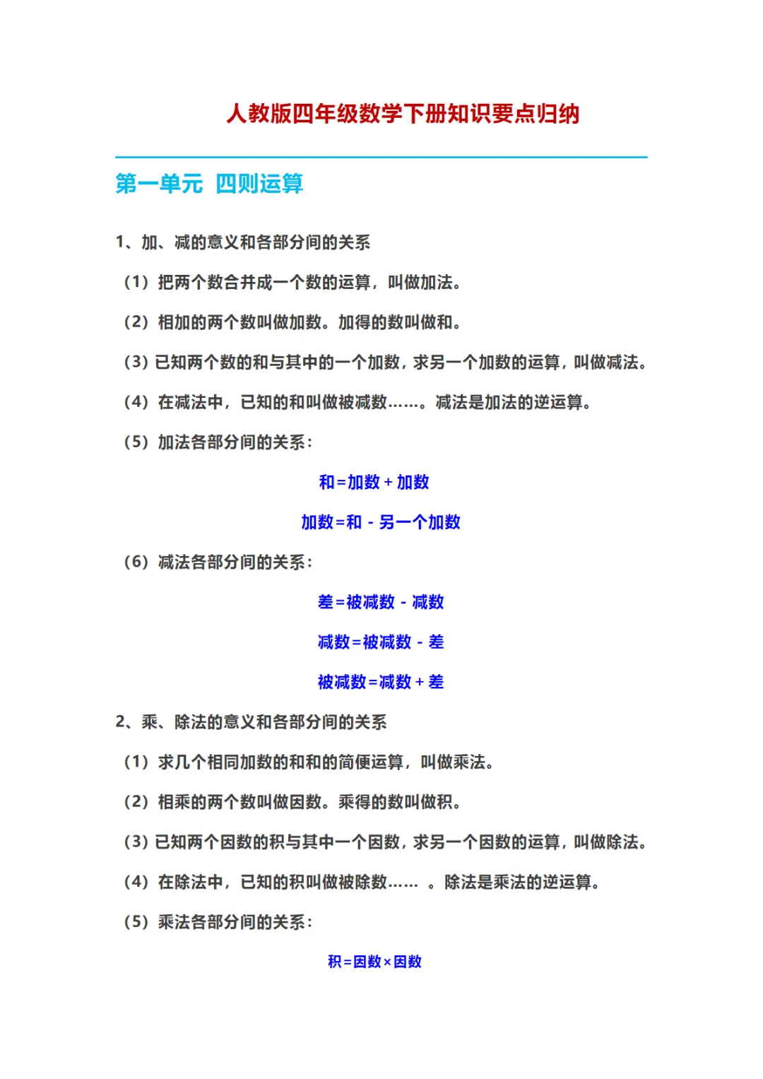 【免费下载】四年级(下)数学 知识要点归纳《人教版》,PDF电子版,可打印
