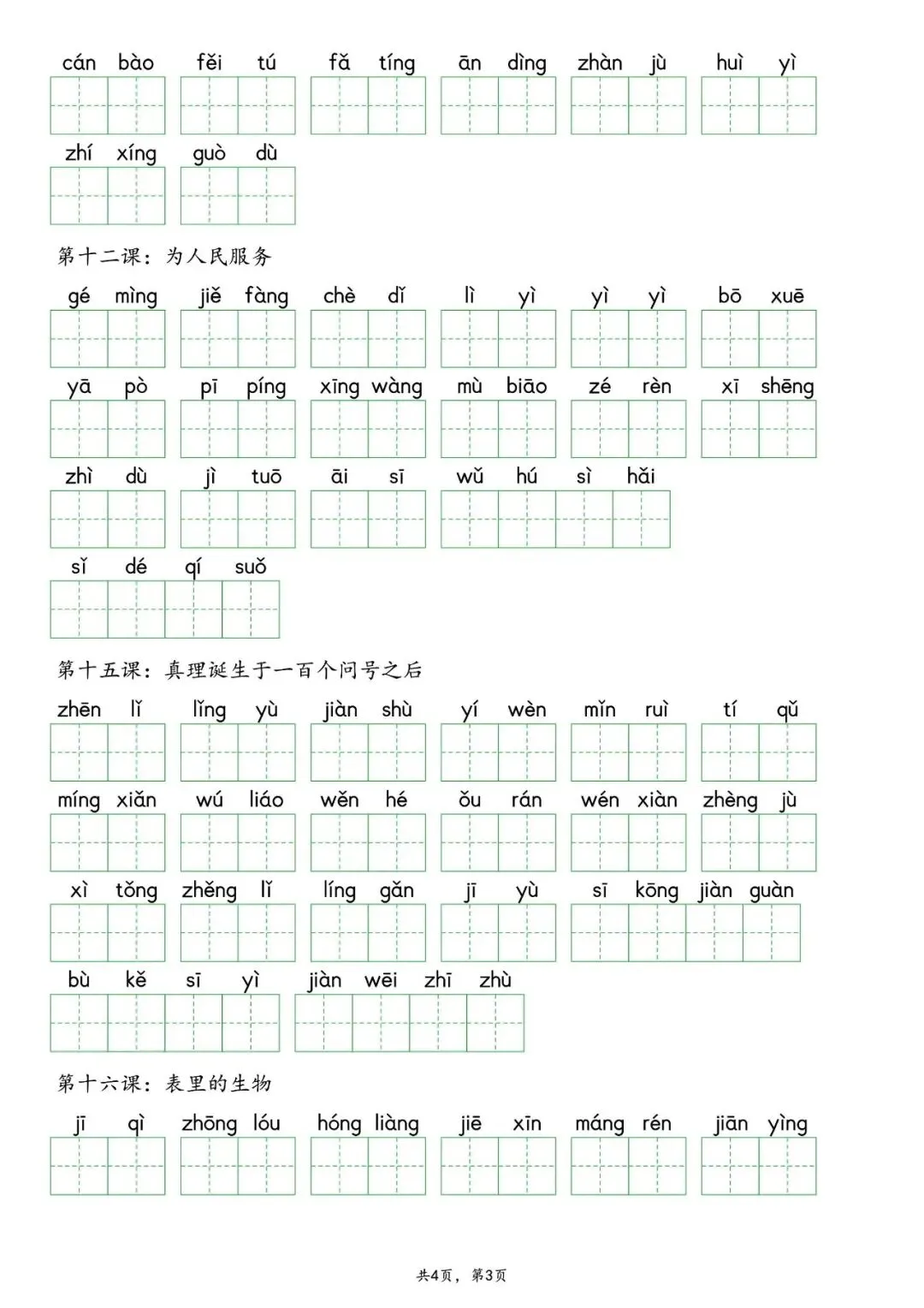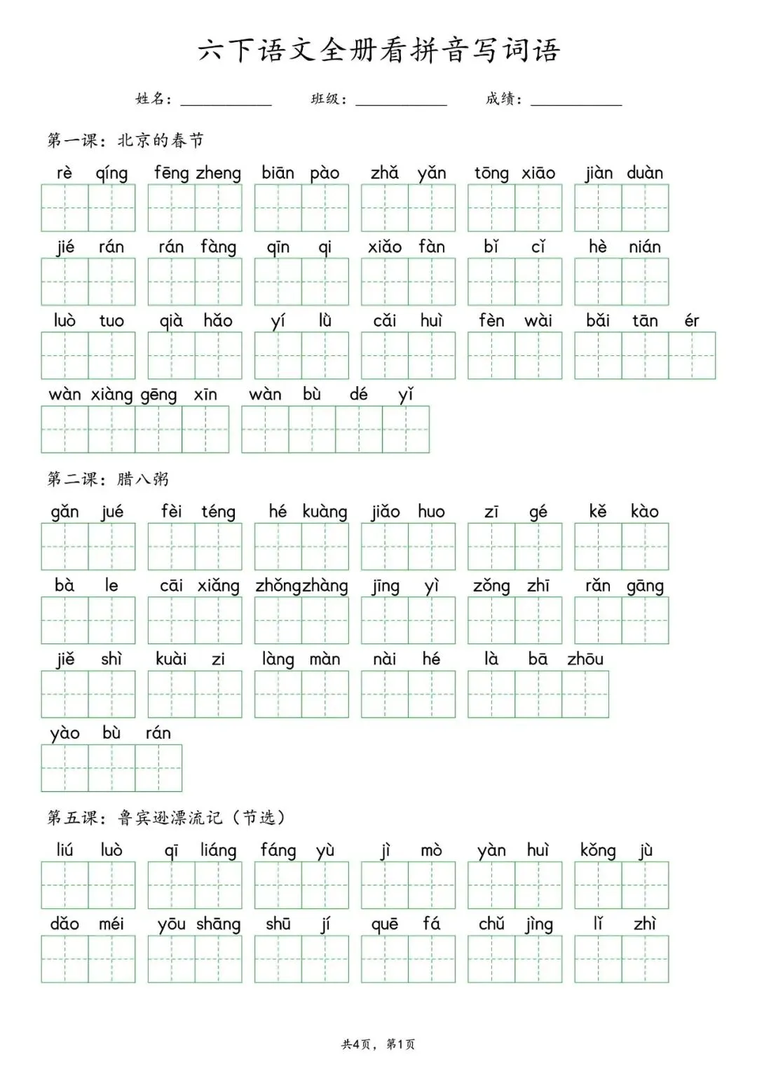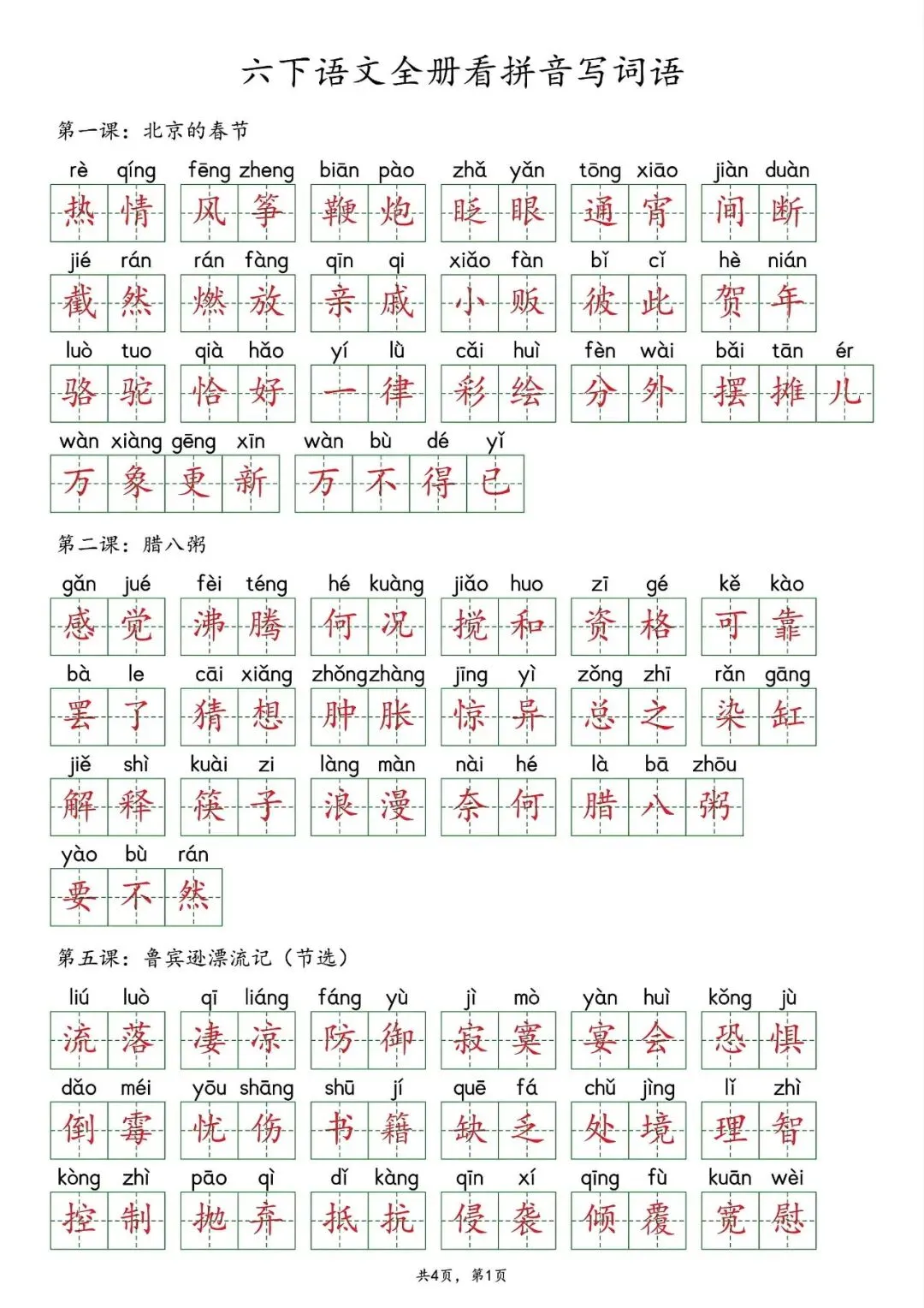 26春部编版六年级下册语文:全册各单元《看拼音写词语》专项练习(含答案);可下载可打印