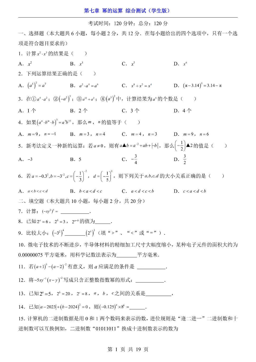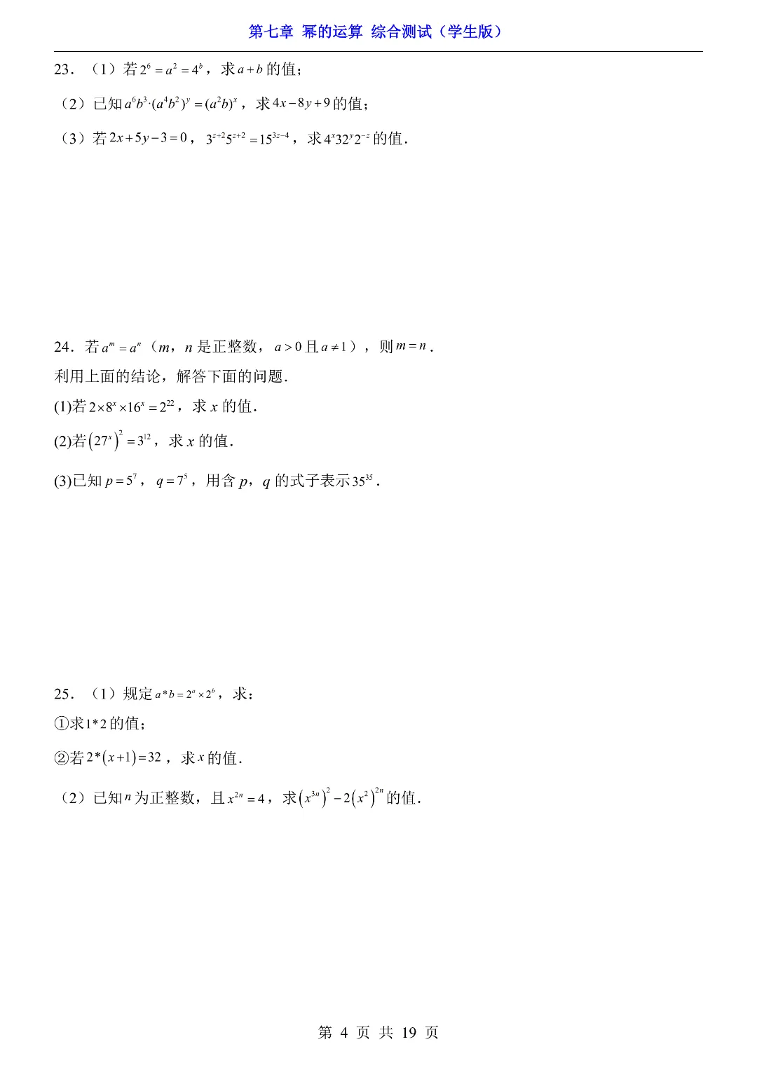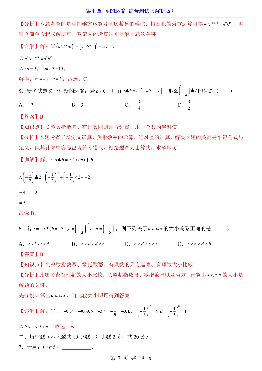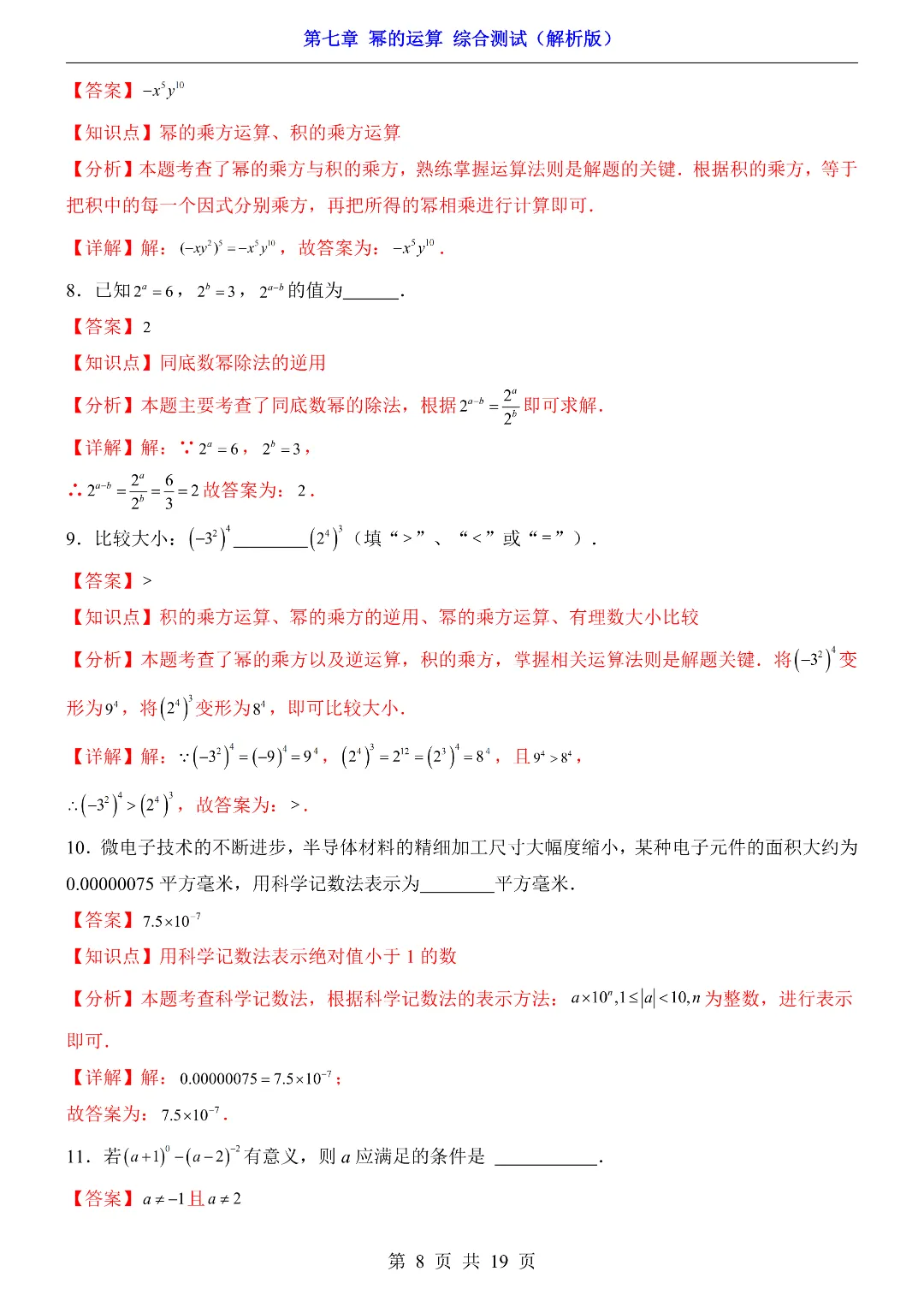 ✨今日给家长朋友们分享的是:【七下数学】26年春七年级初一下册苏科版数学《第七章 幂的运算 综合测试卷》(含答案)电子版可打印