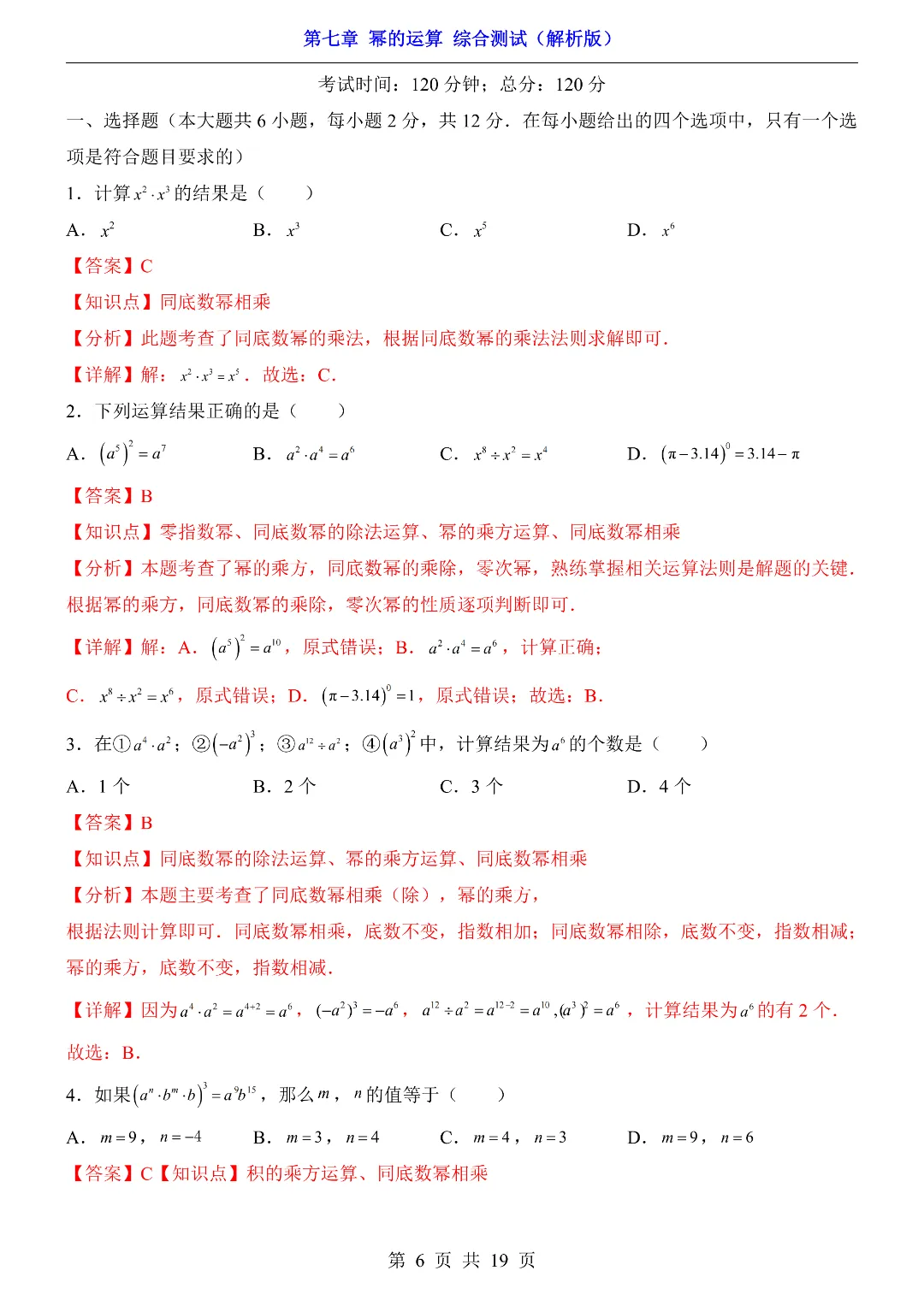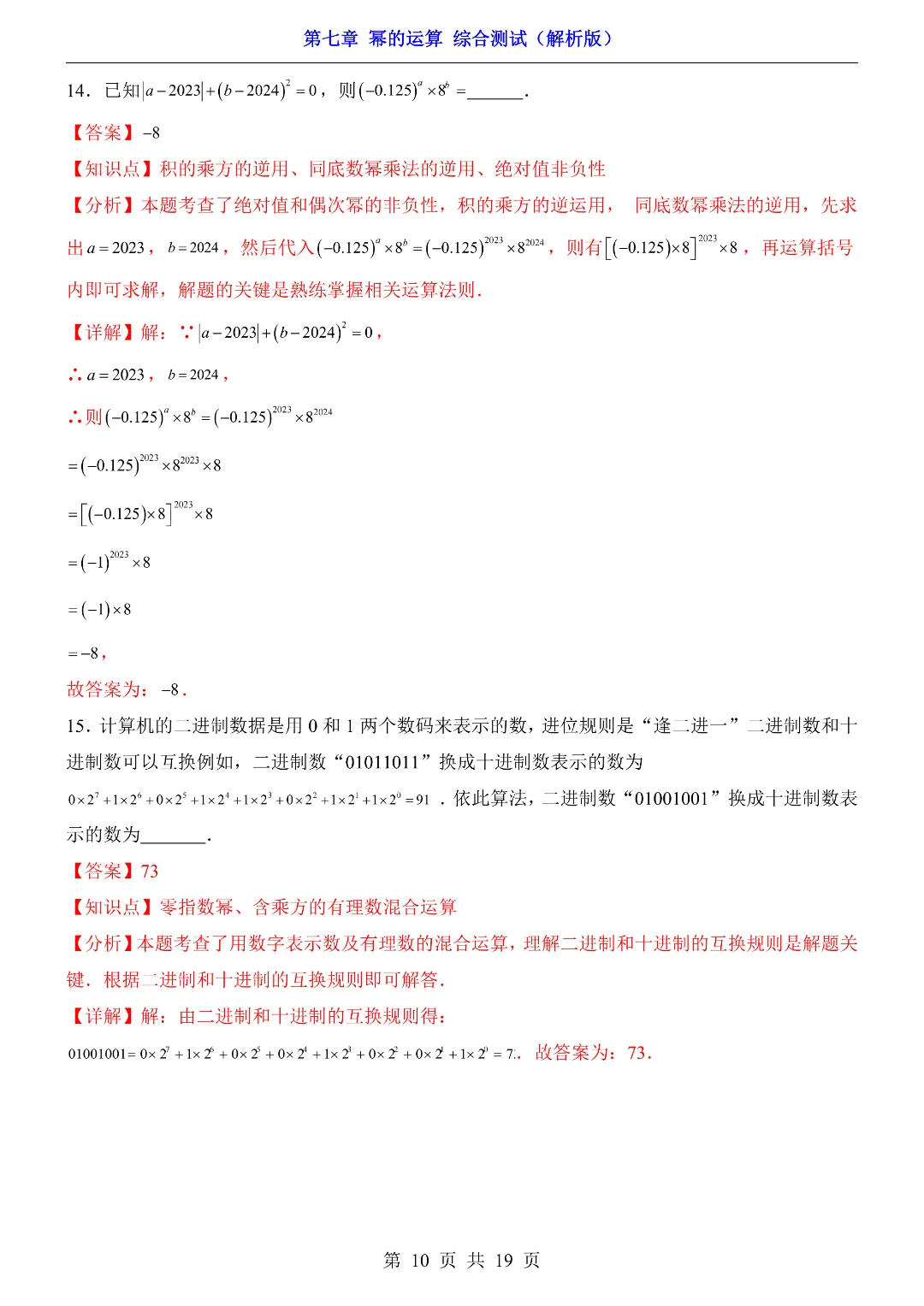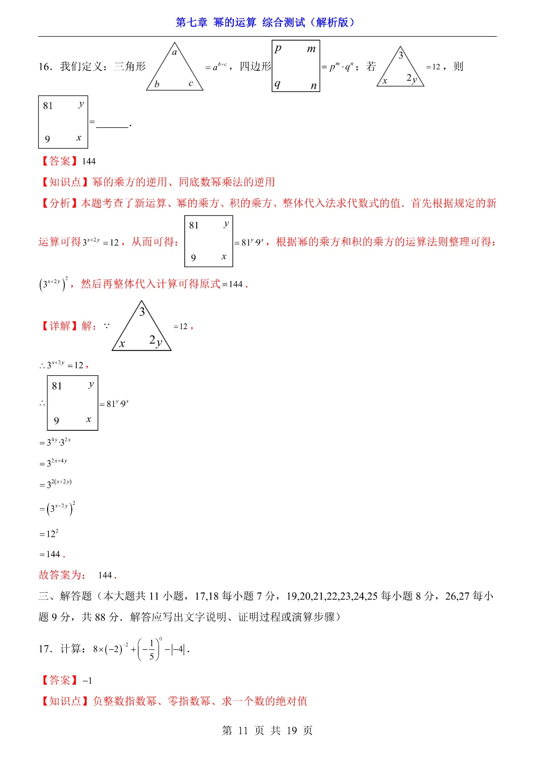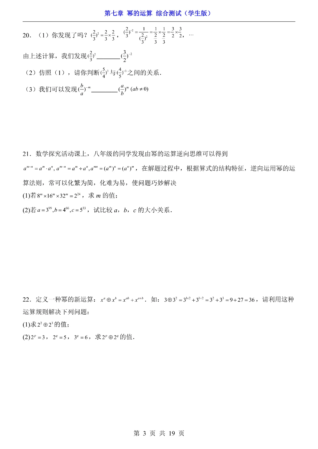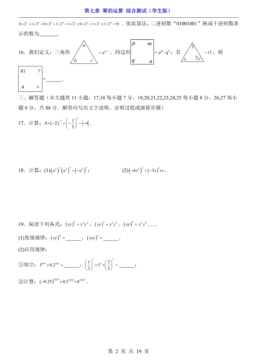 ✨今日给家长朋友们分享的是:【七下数学】26年春七年级初一下册苏科版数学《第七章 幂的运算 综合测试卷》(含答案)电子版可打印