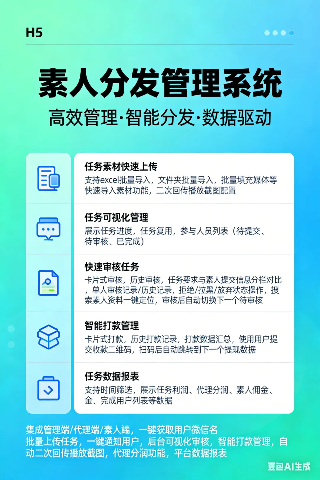更是一个集任务管理、素材分发、审核打款、数据追踪于一体的智能任务管理中心。💡🛠️