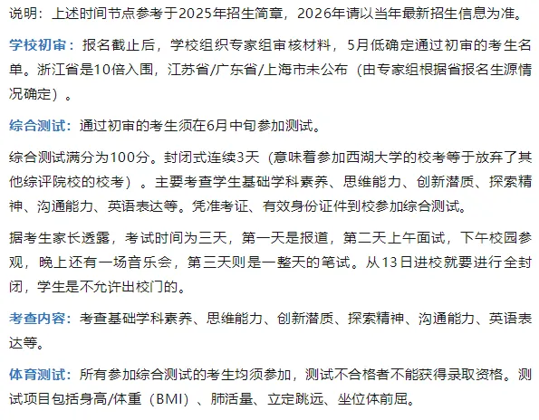 综评解读合集 | 2026年西湖大学综评全解析!