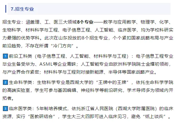 2025年新增为浙江省选调生院校,毕业生可直接参与省市机关选调;科研方向的学生多进入国内外顶尖高校深造,应用学科毕业生则受到华为、ASML、生物医药龙头企业的青睐,就业质量稳居全国前列。对于目标明确、热爱科研或希望在前沿领域深耕的山东考生而言,西湖大学提供的“顶尖师资+个性化培养+广阔平台”组合,是传统升学路径难以替代的优势。