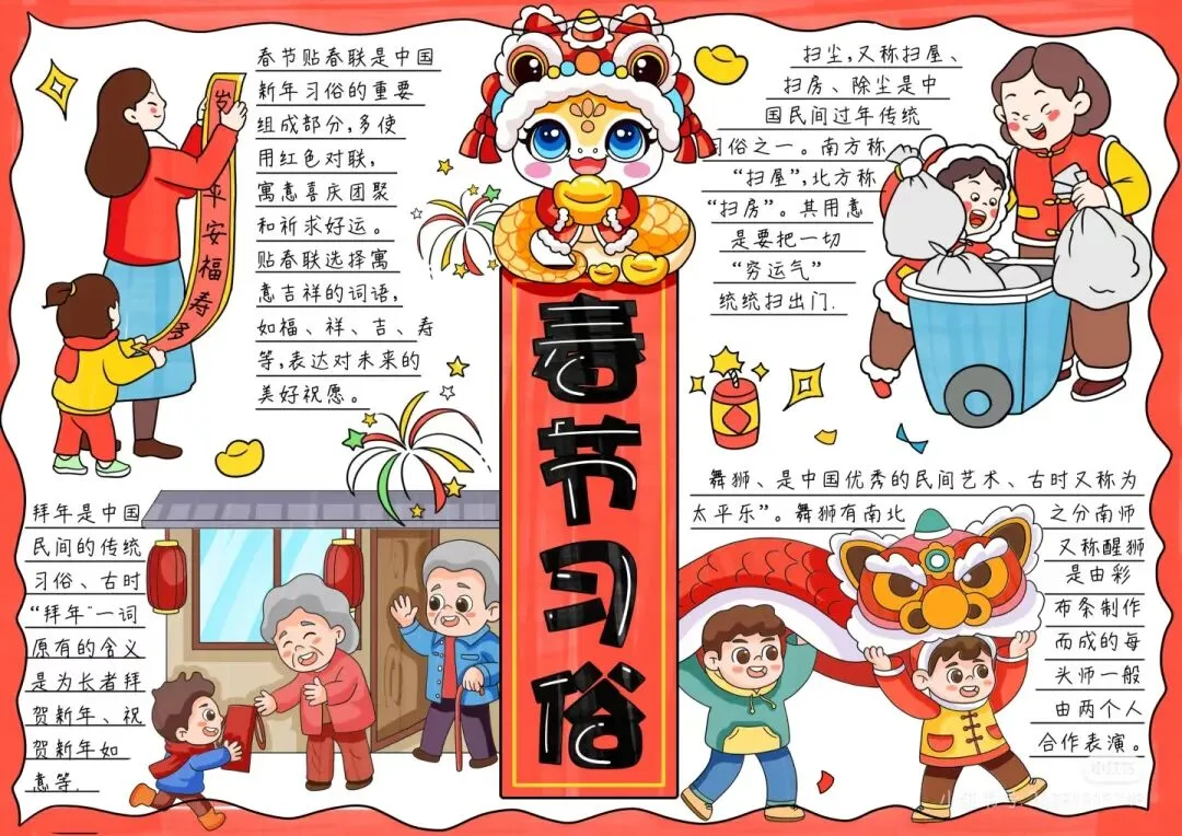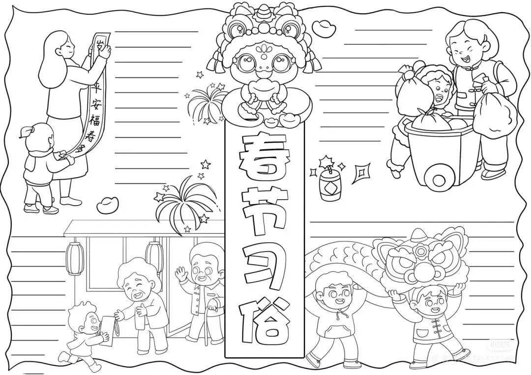 春节习俗手抄报合集,彩绘+线搞可直接打印,赶紧收藏吧~~ “有了这个公众号,孩子的手抄报作业再也不用愁” 【手抄报模板图片】 ……………………………………………………… ……………………………………………………… ……………………………………………………… …………………………………………………….. ……………………………………………………… ……………………………………………………… ……………………………………………………… ……………………………………………………… ……………………………………………………… ……………………………………………………… .…………………………………………………….. ……………………………………………………… ……………………………………………………… ……………………………………………………… ……………………………………………………… ……………………………………………………… ……………………………………………………… 免责声明:我们尊重原创,也注重分享,为了推送的美观和完整性,文中部分图片或文字素材来源网络,版权归原作者所有,如有侵犯您的权益请联系小编,我们将第一时间删除。 感谢您的关注! 你的每个【点赞👍🏻】和【在看】我都当做了喜欢❤️