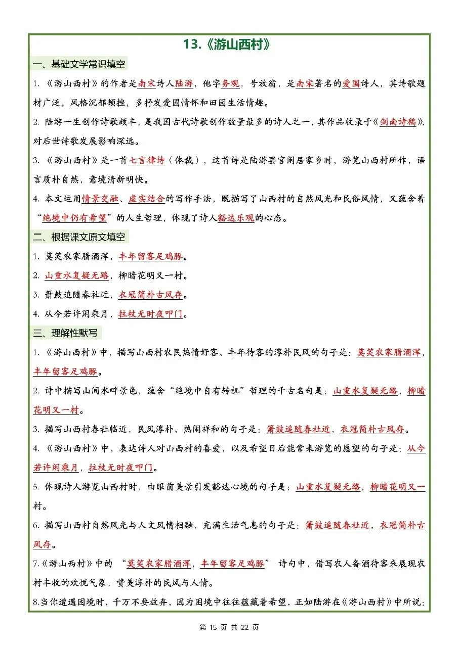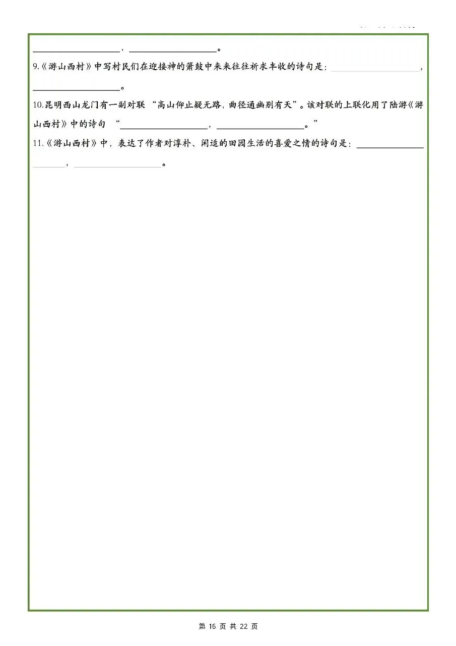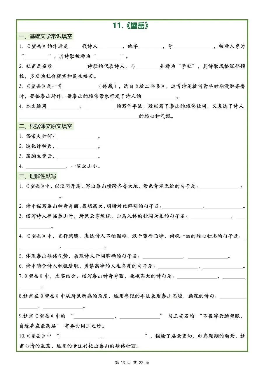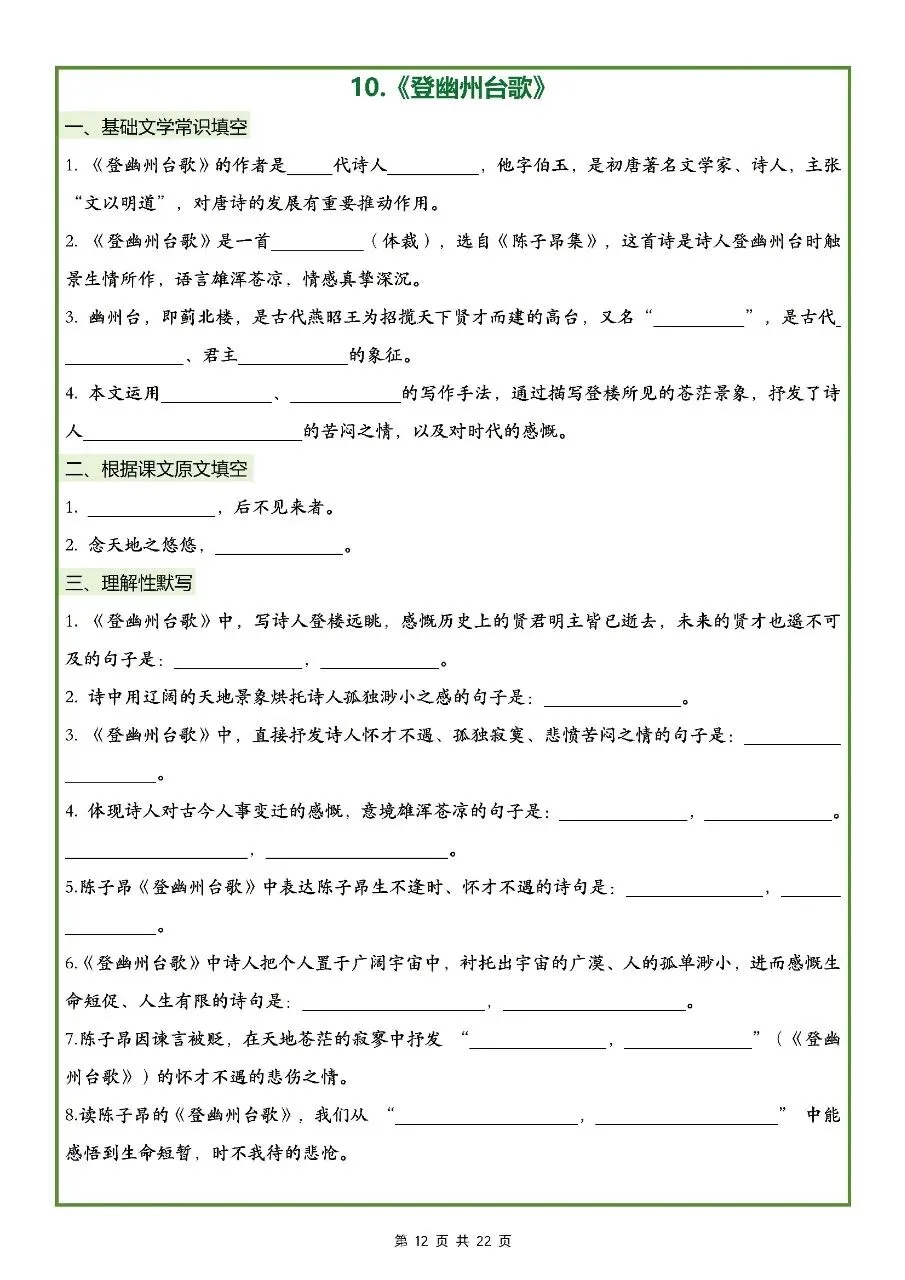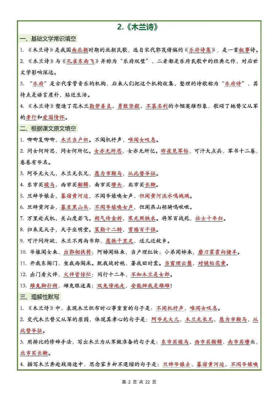 2026年最新版七年级下册语文古诗文理解性默写(默写版+背诵版) 有完整电子版可打印,学霸学习好帮手,建议家长打印,学霸人手一份!