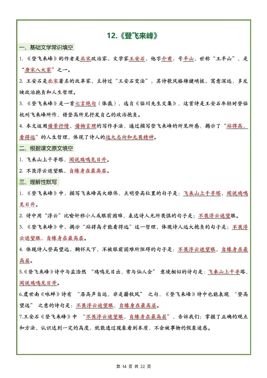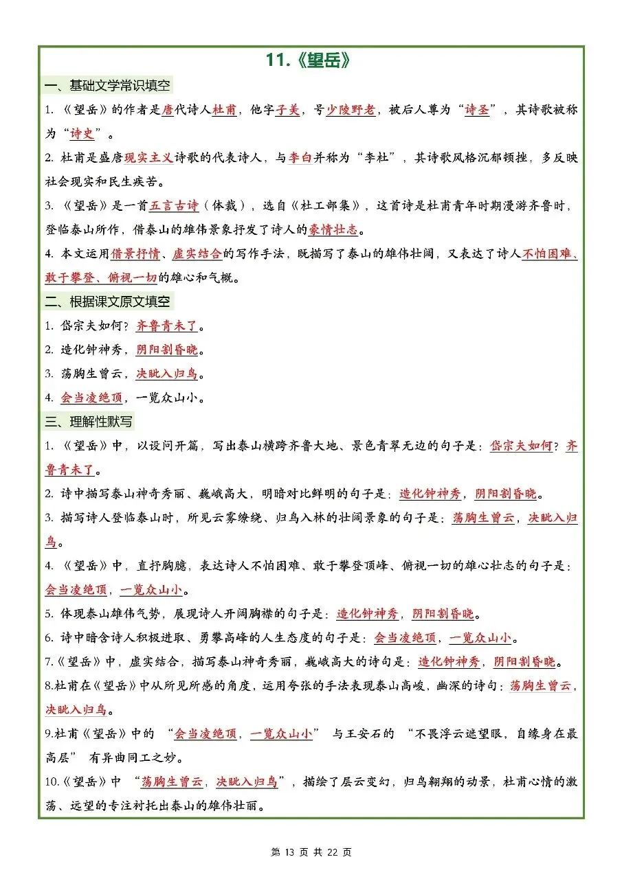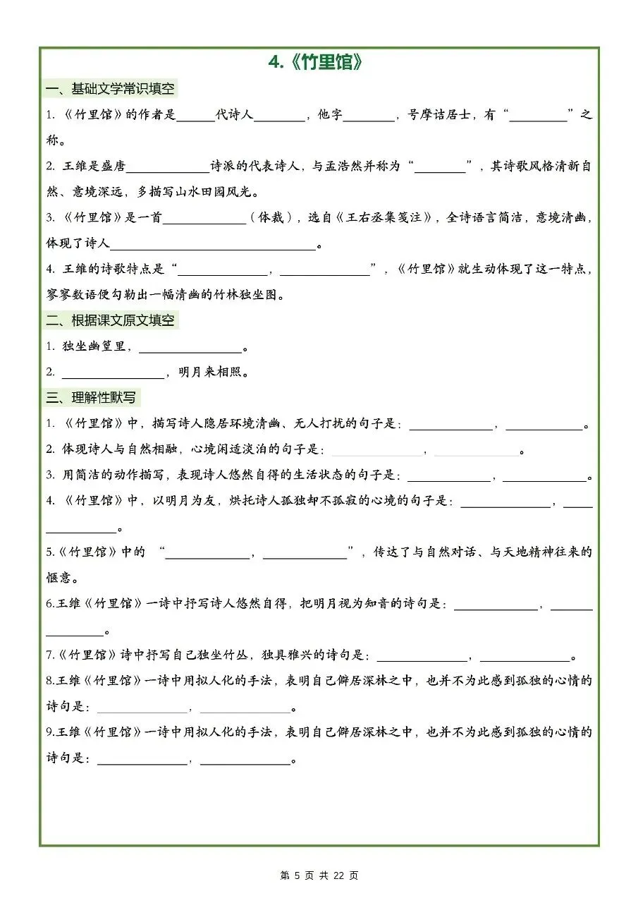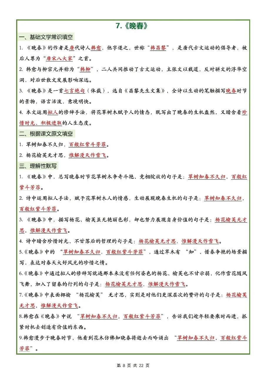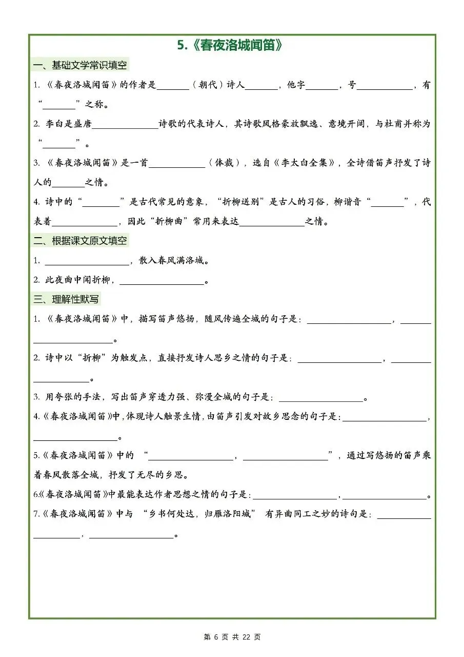 2026年最新版七年级下册语文古诗文理解性默写(默写版+背诵版) 有完整电子版可打印,学霸学习好帮手,建议家长打印,学霸人手一份!