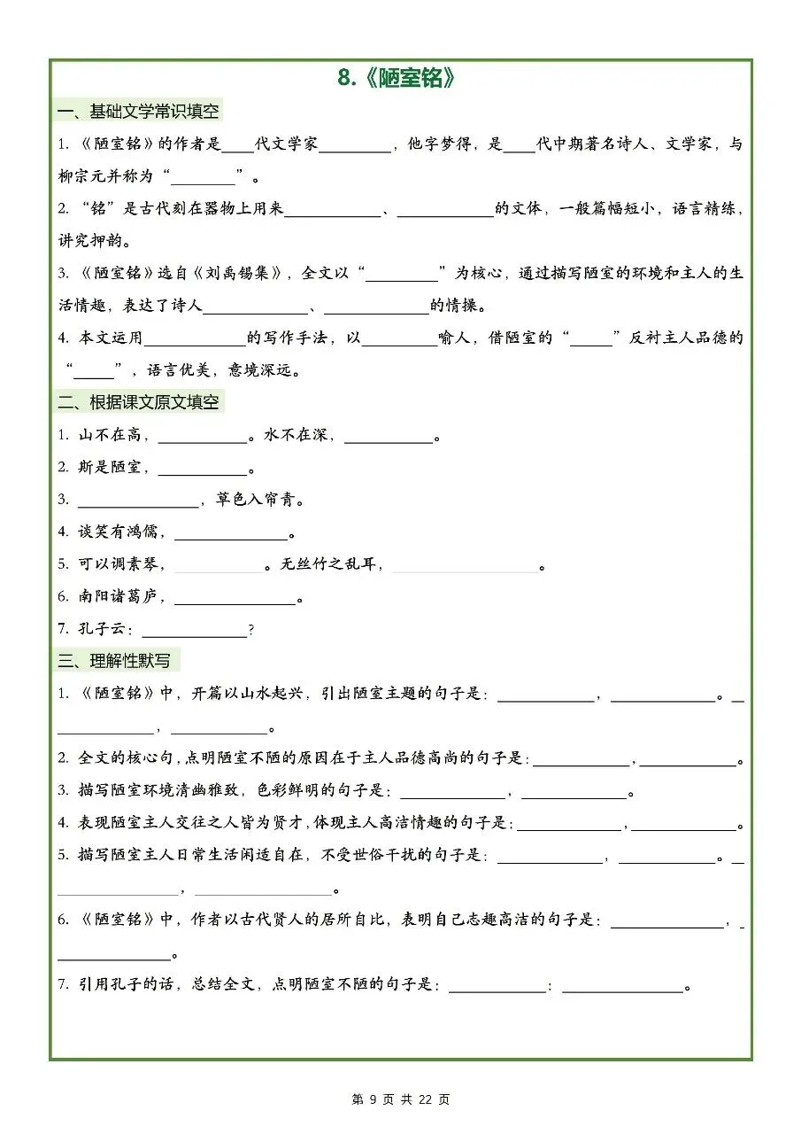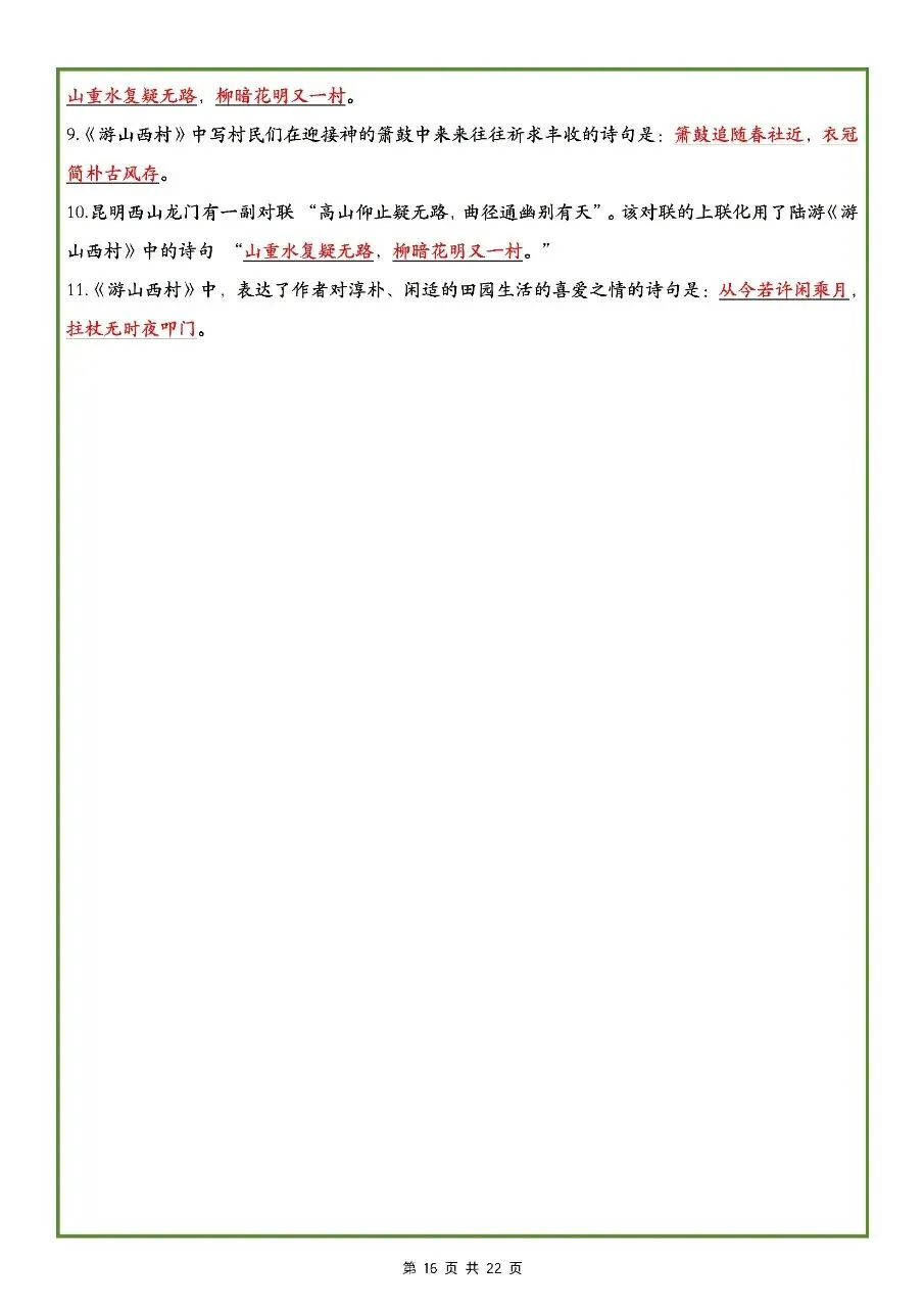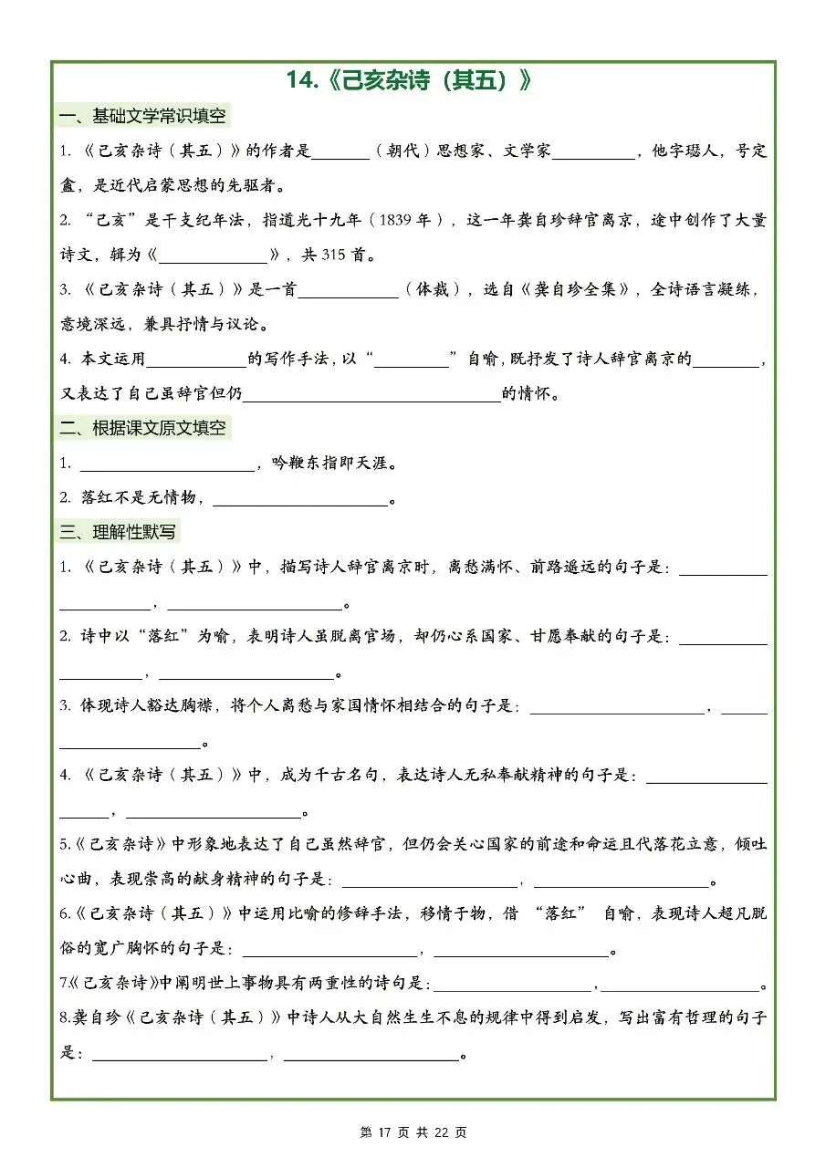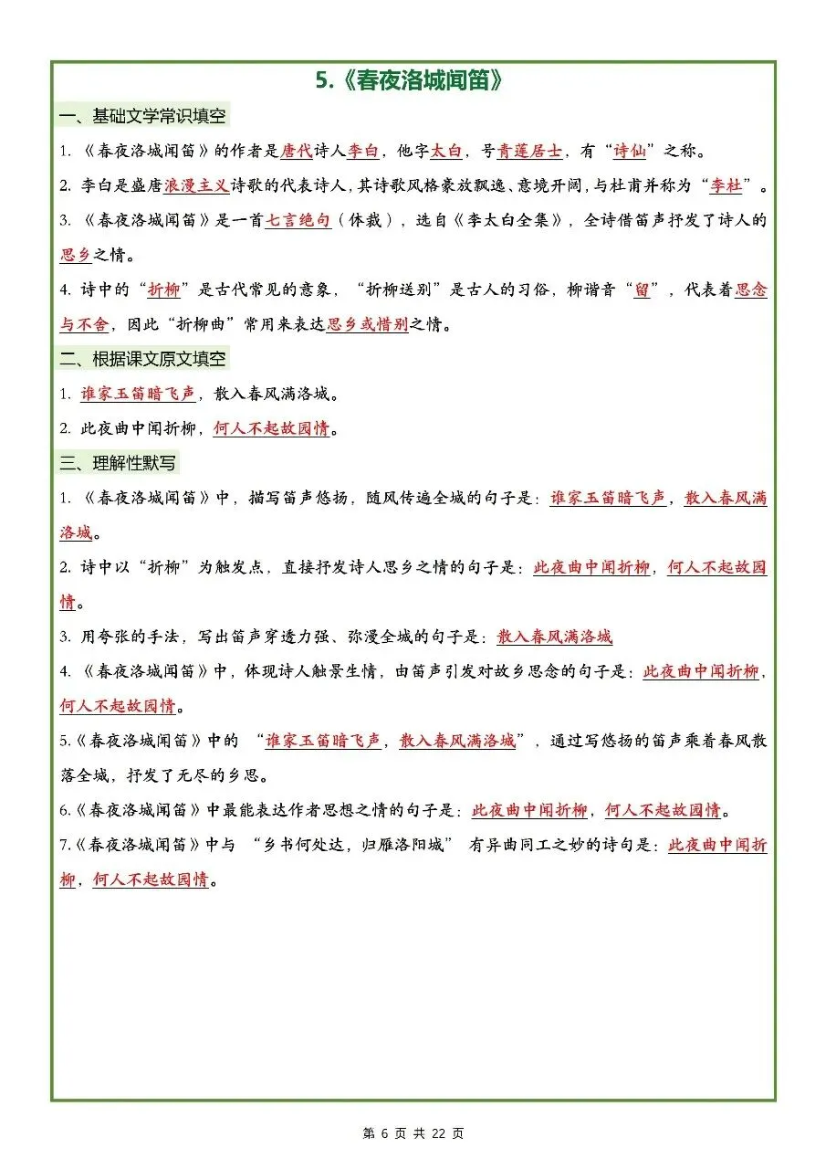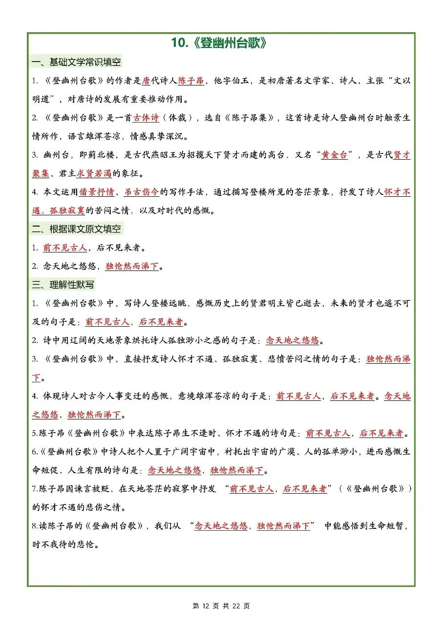 2026年最新版七年级下册语文古诗文理解性默写(默写版+背诵版) 有完整电子版可打印,学霸学习好帮手,建议家长打印,学霸人手一份!