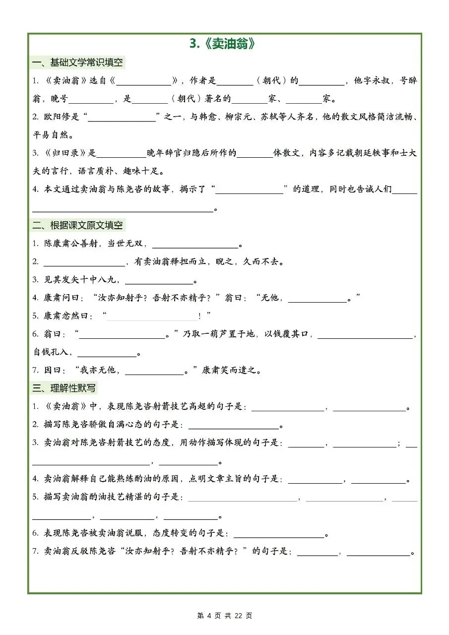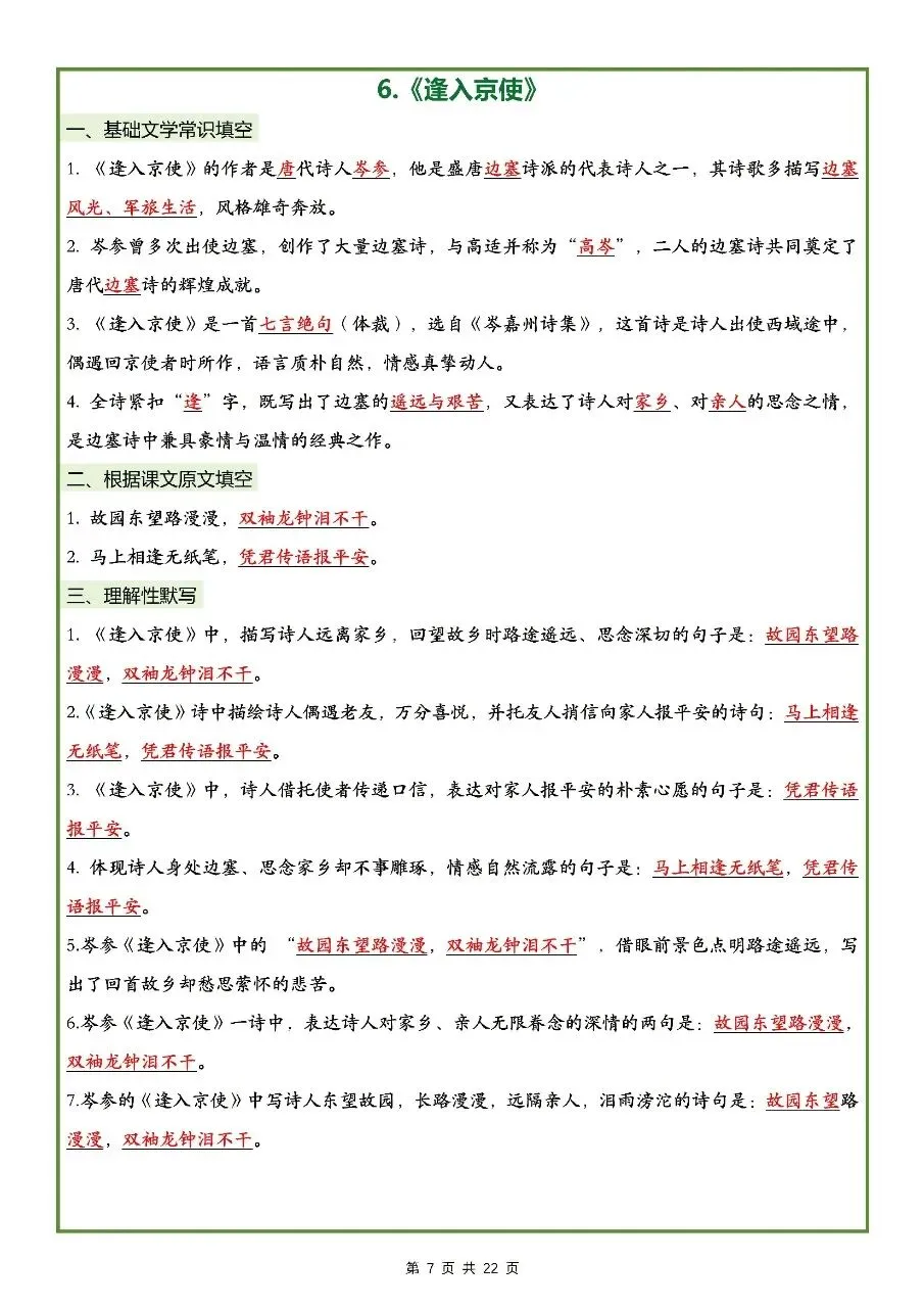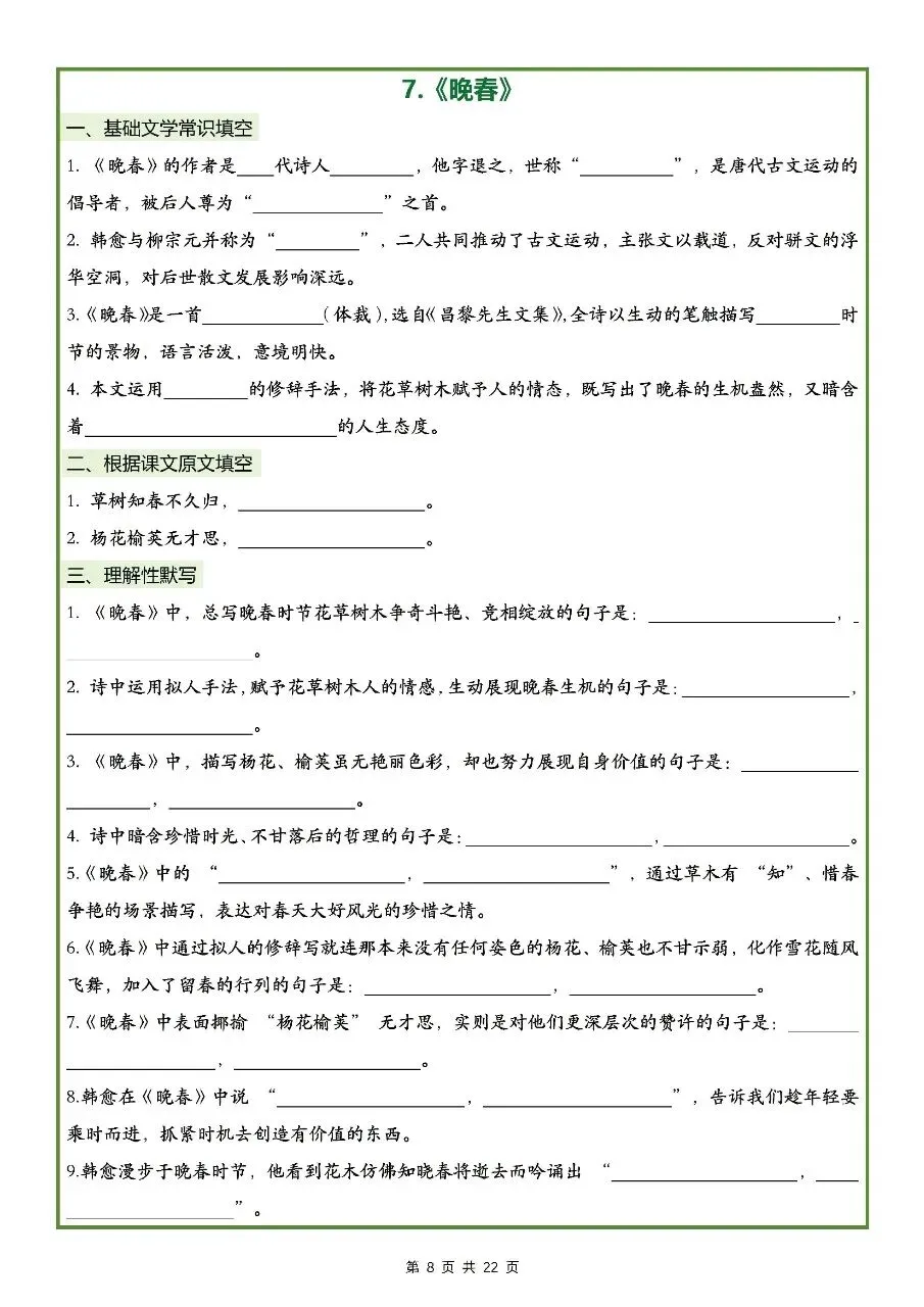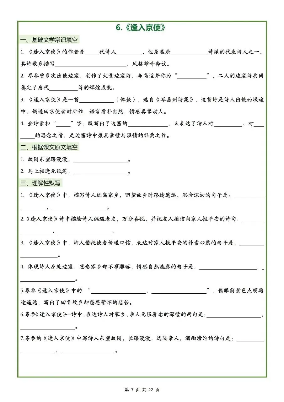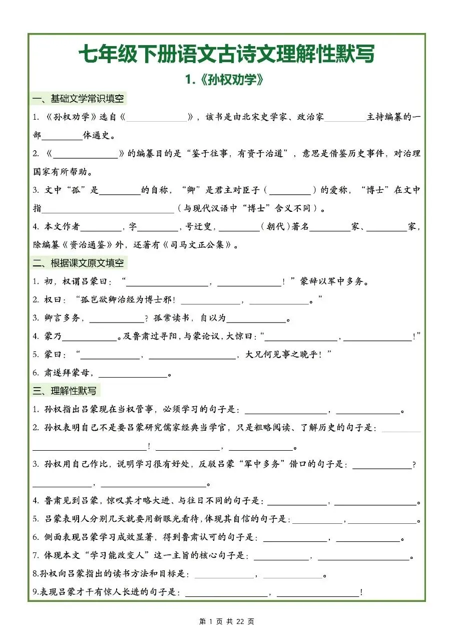 2026年最新版七年级下册语文古诗文理解性默写(默写版+背诵版) 有完整打印,学霸学习好帮手,建议家长打印,学霸人手一份