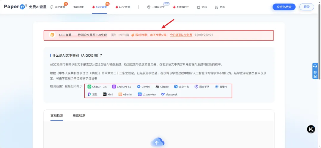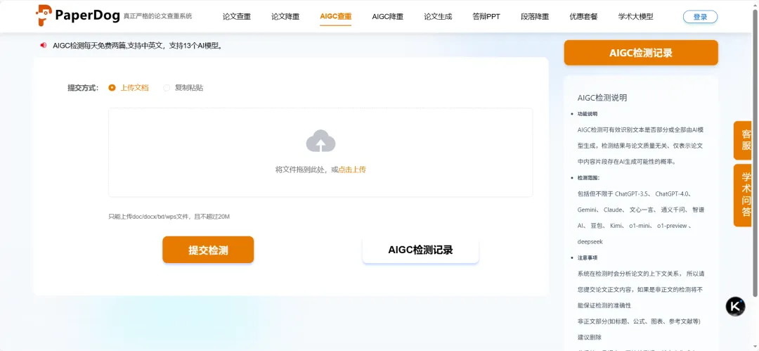 网站地址:https://check.paperdog.net/#/aigccheck/check
