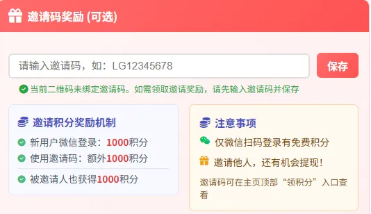 | 是否免费 | 新用户 1000 积分免费体验,邀请好友再得 1000 积分,可免费使用 |