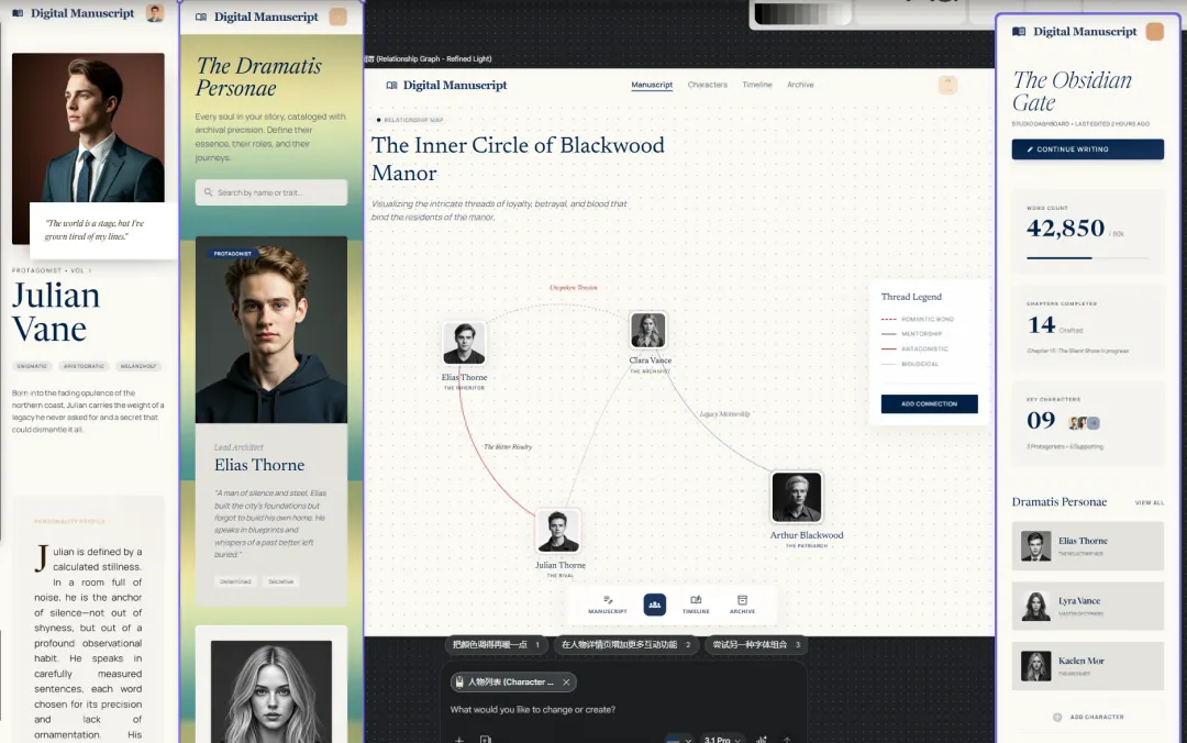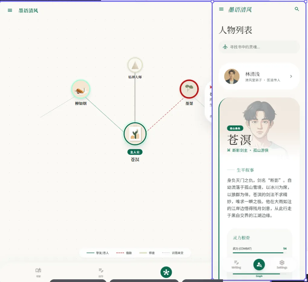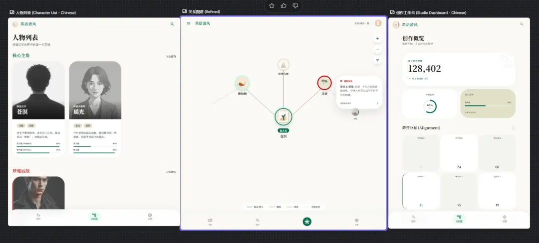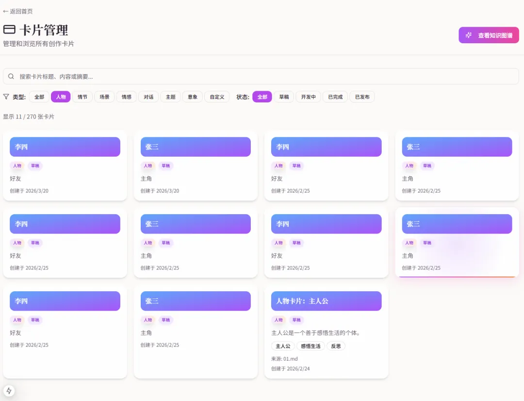 这件事为什么让我感受很强?因为我们团队前阵子刚做过一个项目:小说卡片管理功能的 Web 应用。核心结构是“人物卡片 + 关系图谱”,目标是让创作者能更直观地管理角色脉络。