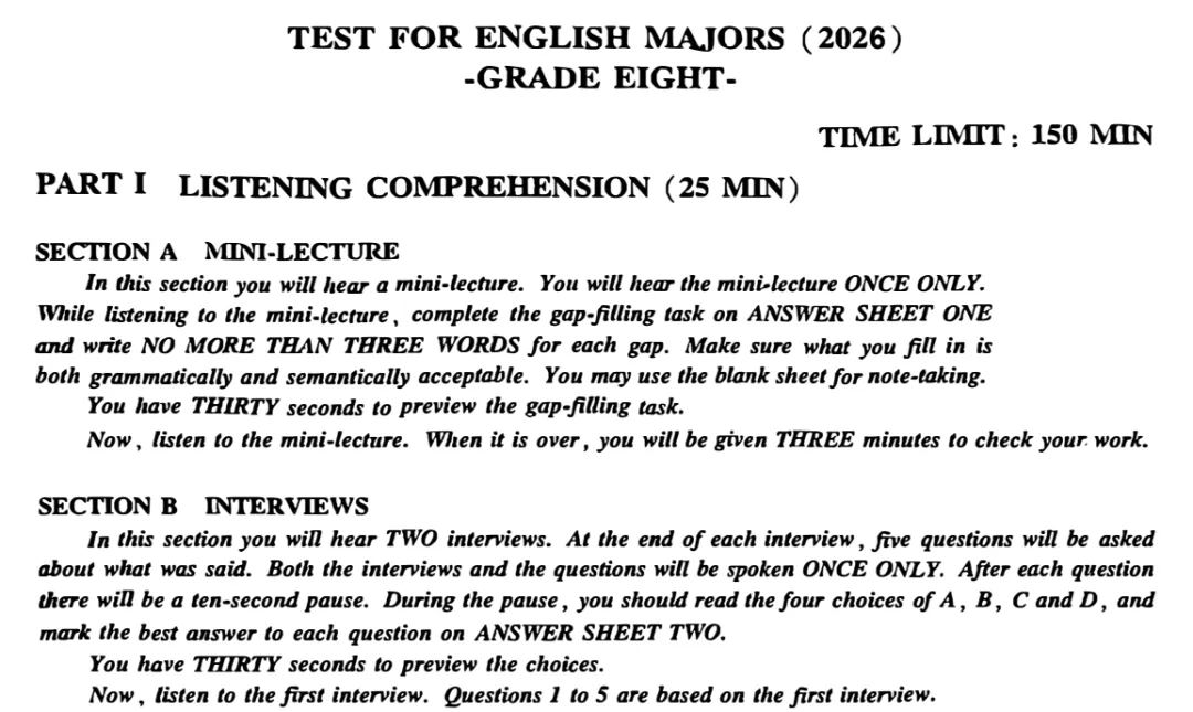 2026年英语专业八级(专八)真题试卷及参考答案(完整版)