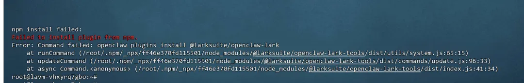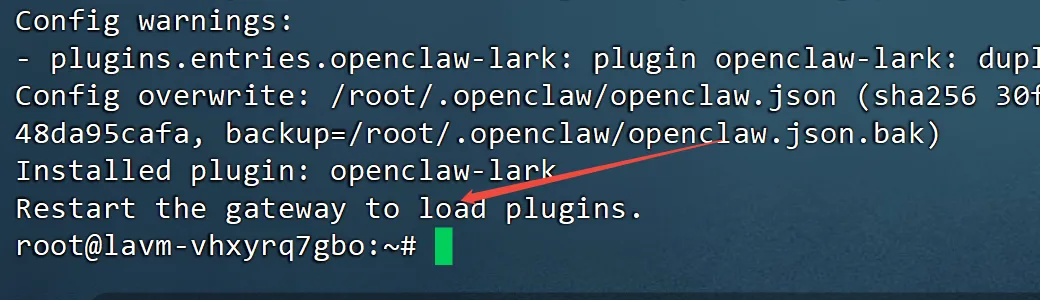 我赶紧登到服务器后台看,发现网关进程直接挂掉了,重启网关后还是没用 —— 飞书里完全没法和小龙虾沟通,大概率是小龙虾自动执行安装指令时出错,把自身进程搞崩了。