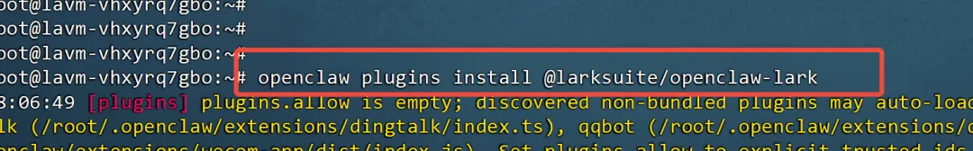 openclaw plugins install @larksuite/openclaw-lark