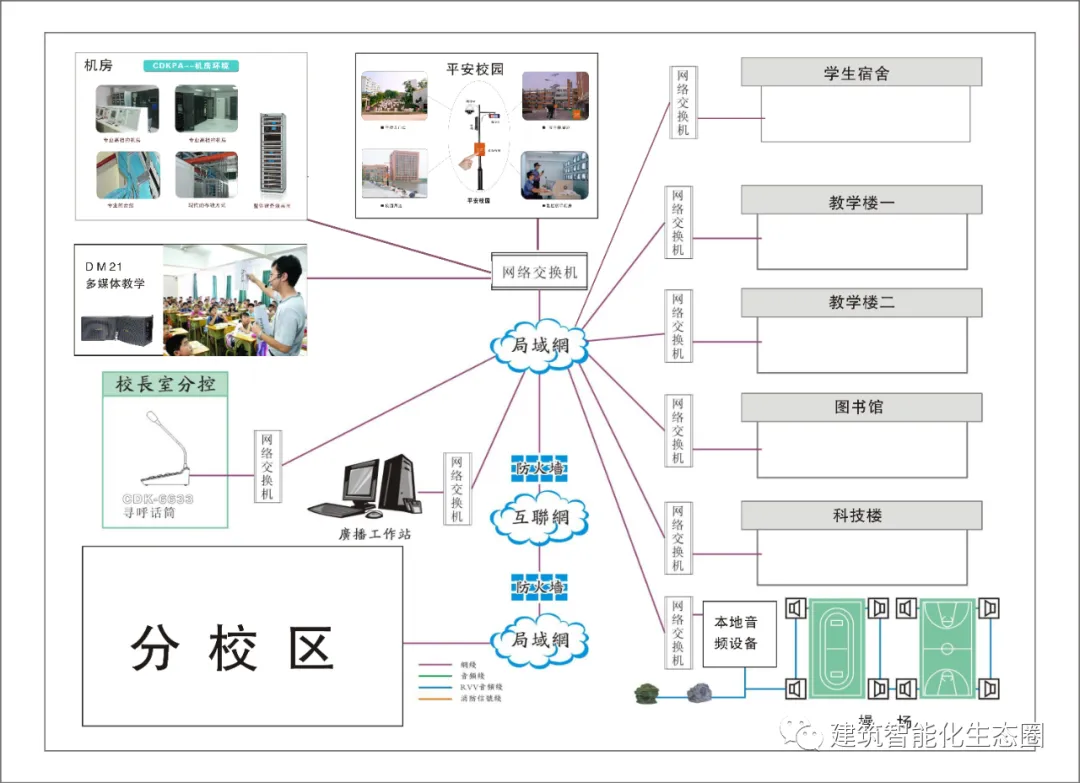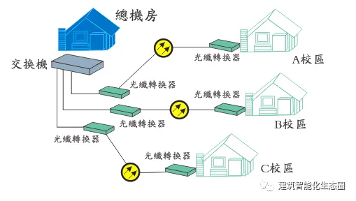 3.各校区采用网格连接,数字化,传输距离远,损耗低,施工布线简单,维护方便,节约成本;