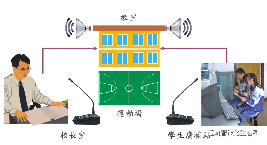 领导在办公室可远程对整个校区、各个分区或某个教室点进行呼叫讲话,具有优先级;学生广播站对全校区广播播音。