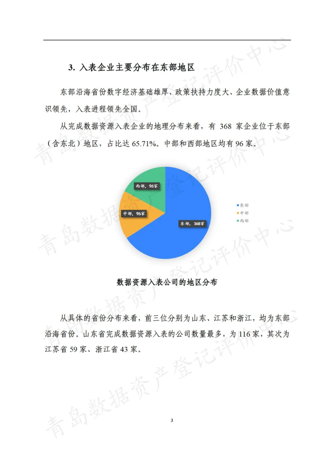 东部地区持续领跑:东部沿海数字经济基础雄厚,入表企业数量、进度领先全国,山东以116家居省份榜首。 -