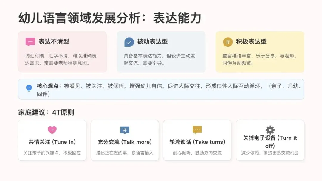 小、中、大班幼儿在身心发展、行为习惯、社会性发展及学习品质上,呈现出显著的年龄差异与鲜明的阶段性发展特点。小班幼儿正处于适应集体、建立安全感的关键期,中班侧重规则意识与社交能力的培养,大班则聚焦幼小衔接、任务意识与独立能力的发展。不同年龄段有着不同的教育重点与引导方式,需要家园双方精准把握、科学应对。