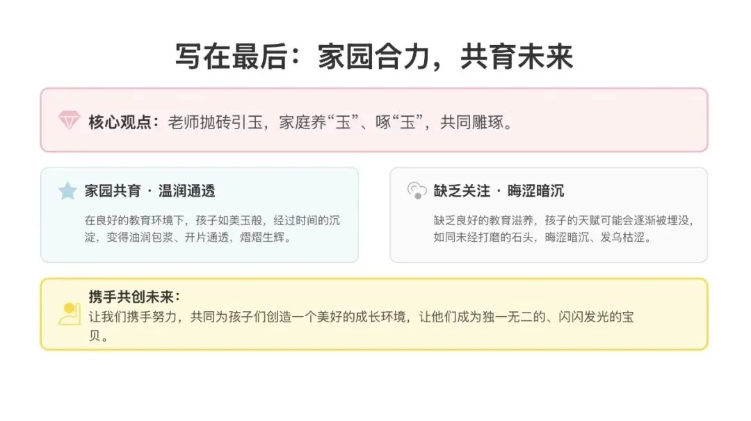 家园携手,如春风化雨;同心共育,似鸟语花香。孩子的成长藏在日常点滴里,家长会让我们同向同行,用爱与陪伴,守护每一朵小花静静绽放,静待美好生根发芽。