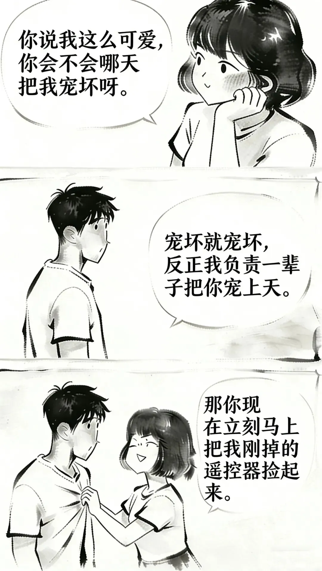 趣味漫画:老婆说:你说我这么可爱,你会不会哪天把我宠坏呀.老公说:宠坏就宠坏,反正我负责一辈子把你宠上天.