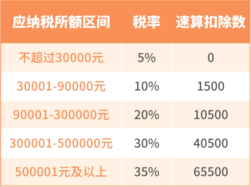 在中国,个人所得税适用的是超额累进税率,接下来,我们根据税率表和经营所得应纳税额计算公式