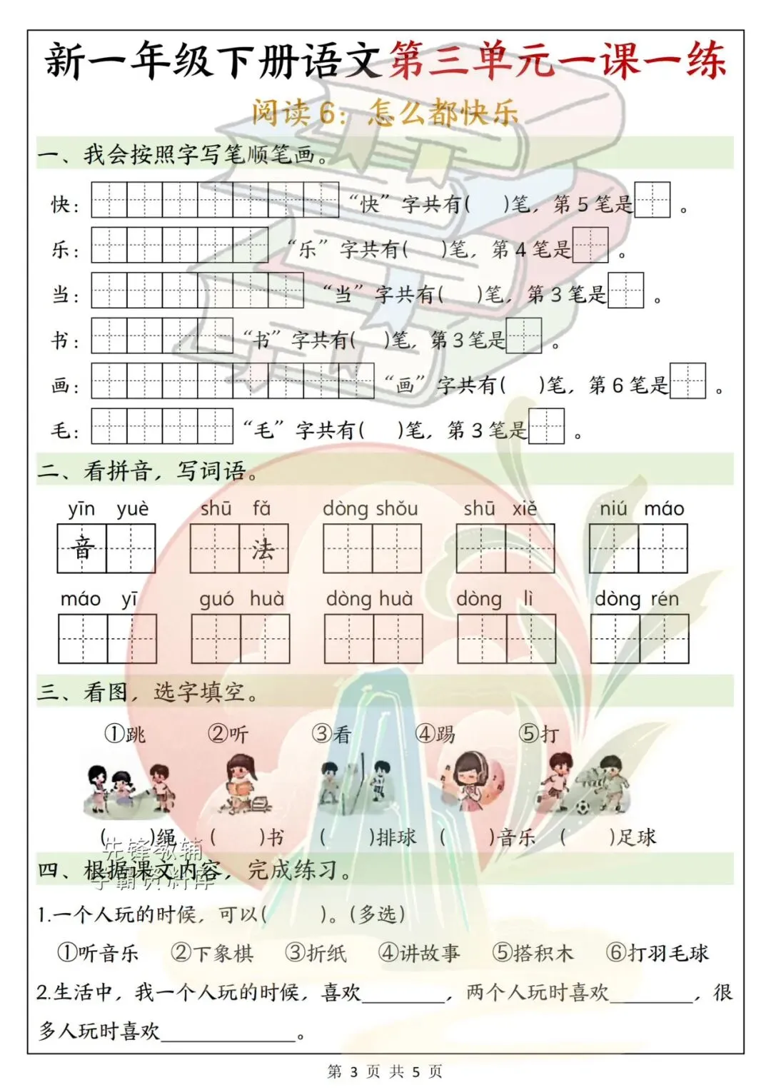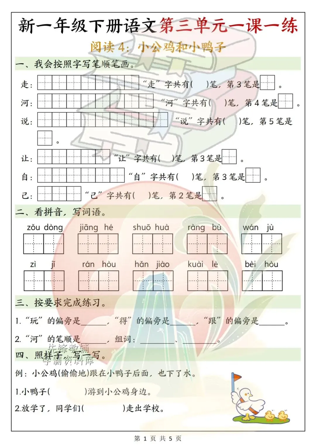 这份一年级语文下册第三单元学习单,紧扣教材重点,涵盖生字词、笔画笔顺和句子练习题型基础又实用。孩子课后自主完成,既能巩固课堂知识,也能培养语文学习习惯,轻松打好语文基础~