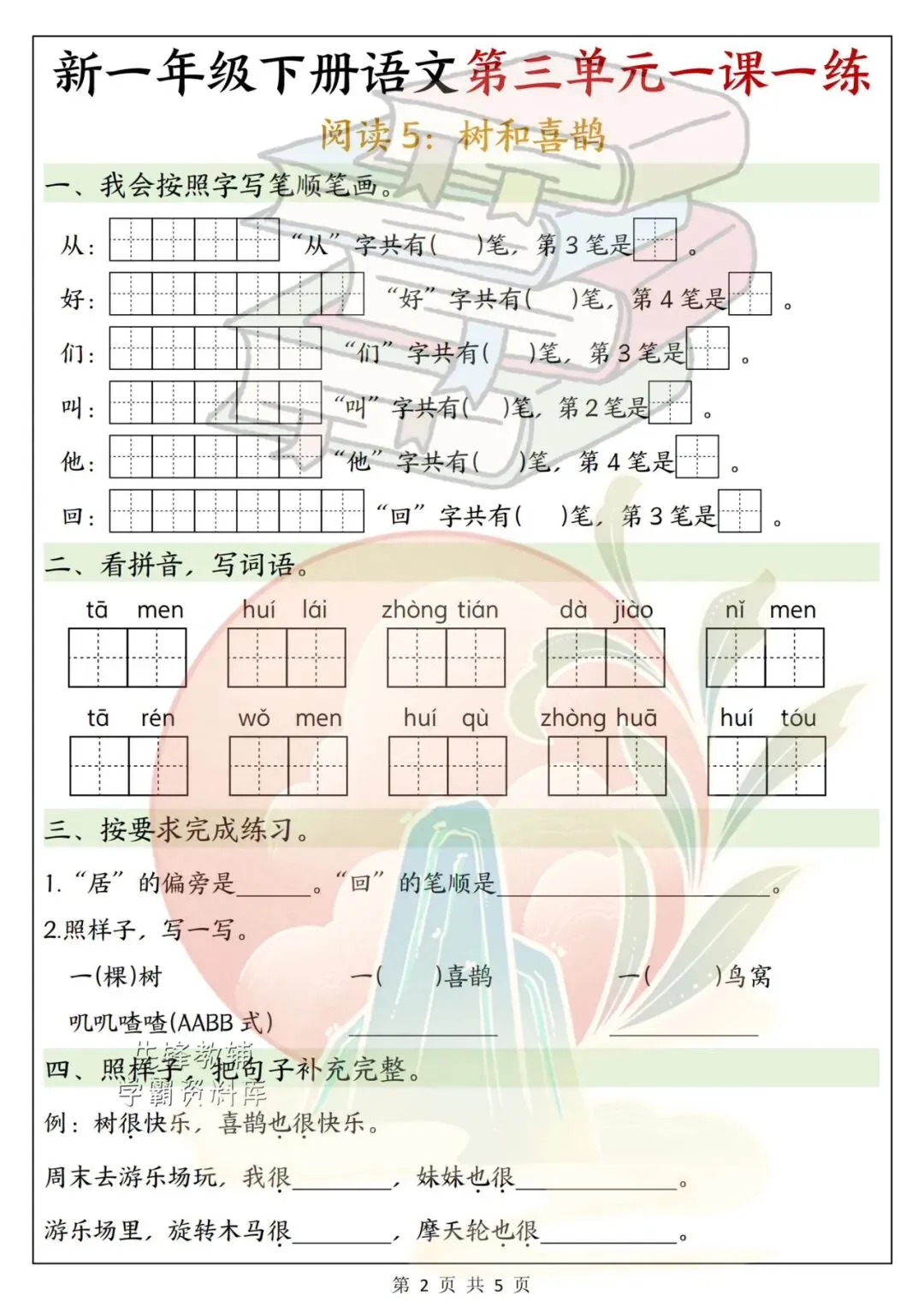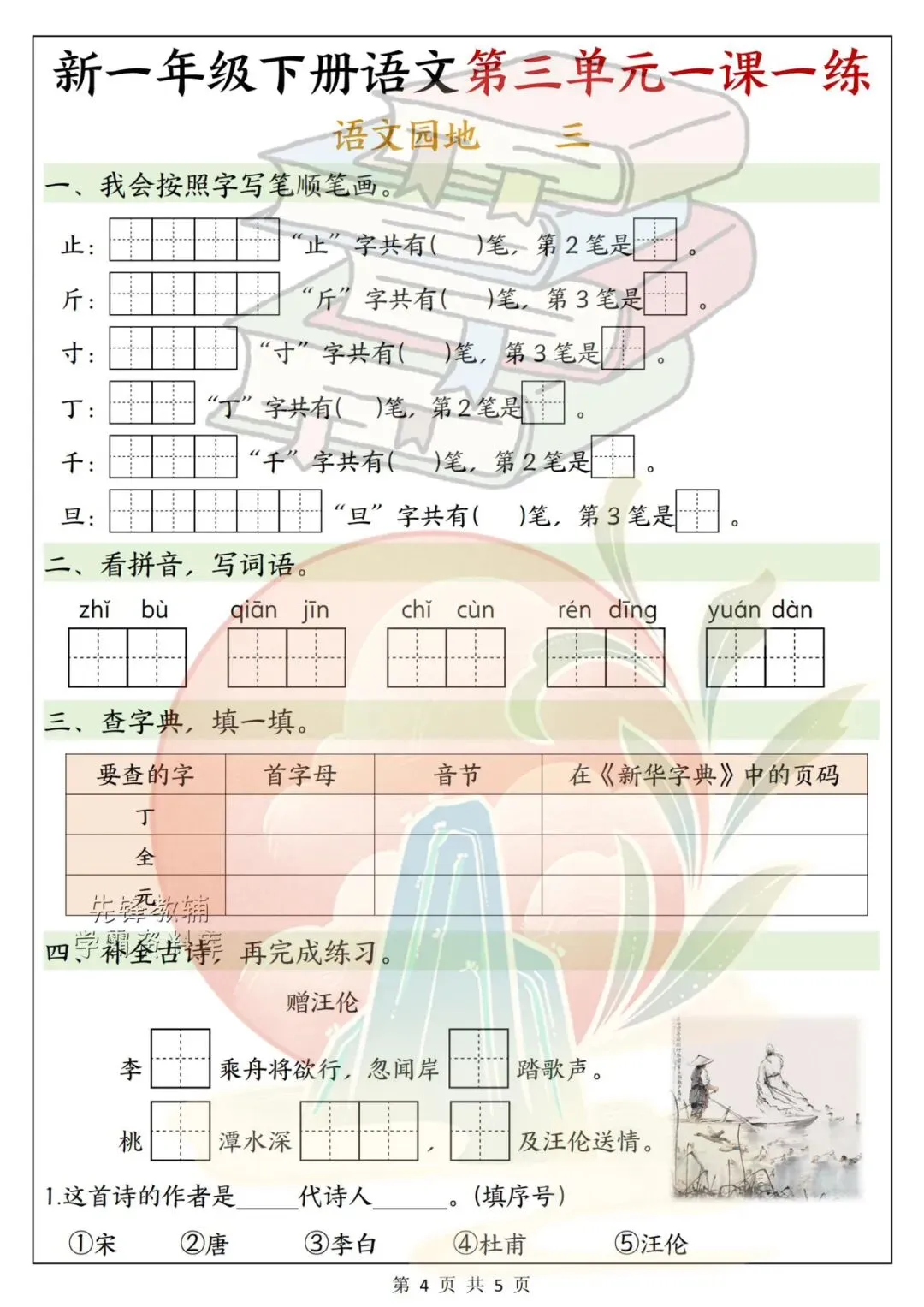 一年级语文下册第三单元学习单|同步课本,高效巩固