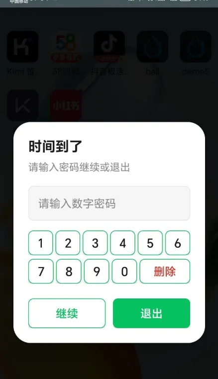 时间到,自动锁定计时结束后,手机屏幕会自动锁定。必须输入家长设置的密码才能退出,无法通过常规方式绕过。
