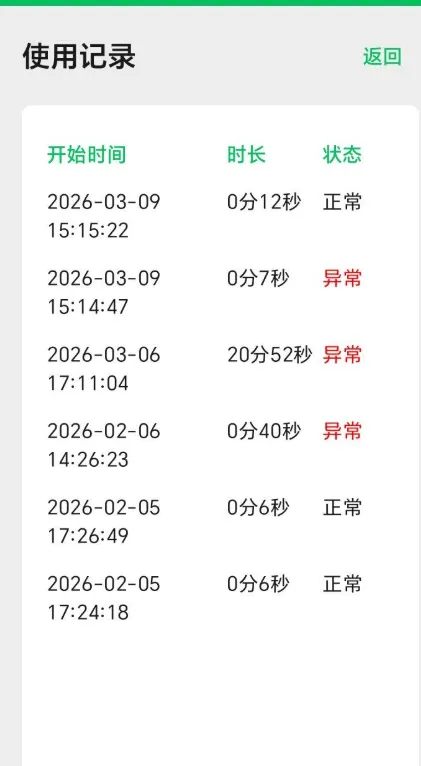 使用记录可追溯软件会记录每次使用的详情,即使程序被强行中止,也会留下异常提醒。家长可以清楚了解手机的使用情况,心里更有数。