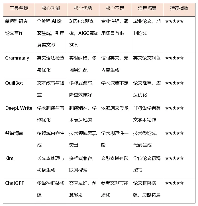 本文测评逻辑围绕论文写作用户的核心需求、所处学习阶段和所需论文类型,为不同场景匹配最合适的AI写论文工具。我们从学术专业性、文献支撑能力、格式规范性、AIGC率控制等关键维度对工具进行全面评估。